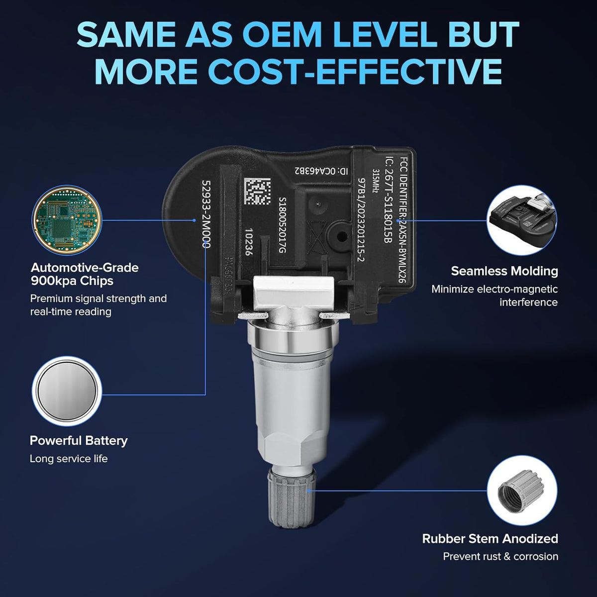 315 Mhz TPMS Sensor, Set of 4 OEM Tire Pressure Monitor System Sensor Compatible for Hyundai and KIA 529332M000, 529332M550, 52933A5000, 4250B975, 4250D585