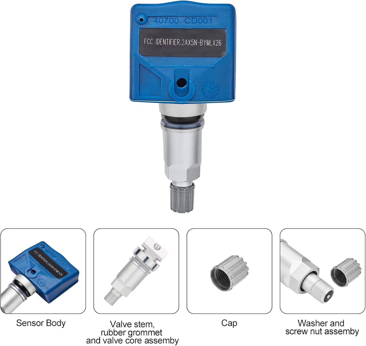 【Preprogrammed】: This tire sensor comes pre-programmed and OE validated as direct-fit to replace 40700CD001,40700JK01B,40700JA01B,40700JA01C,40700CK001,40700CK002,407001A01C,40700JA02B,407003AN0A,407001AA0B,407001PA0A,407001AA0D,407003AN0D,407003AN0C,407003AN1A,4321182Z00,4313054J21,4313086Z20,42500B75,4250B877,MN103081,5L1Z1A150AA.