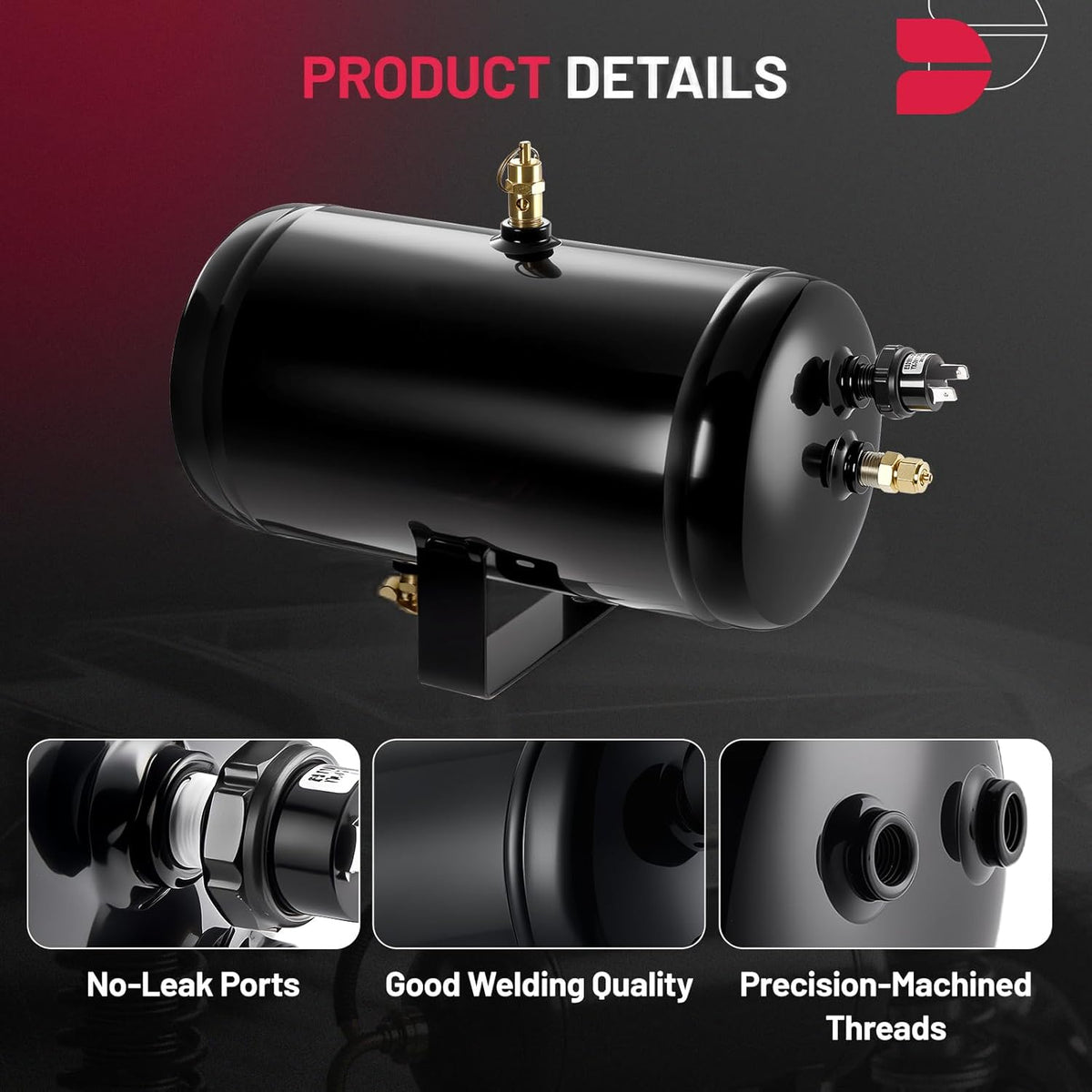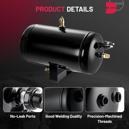 【Easy Install & Multipurpose】With quick-connect fittings for straightforward setup, this air tank is ideal for powering train horns, air suspensions and brake systems, offering stable performance across diverse vehicle applications