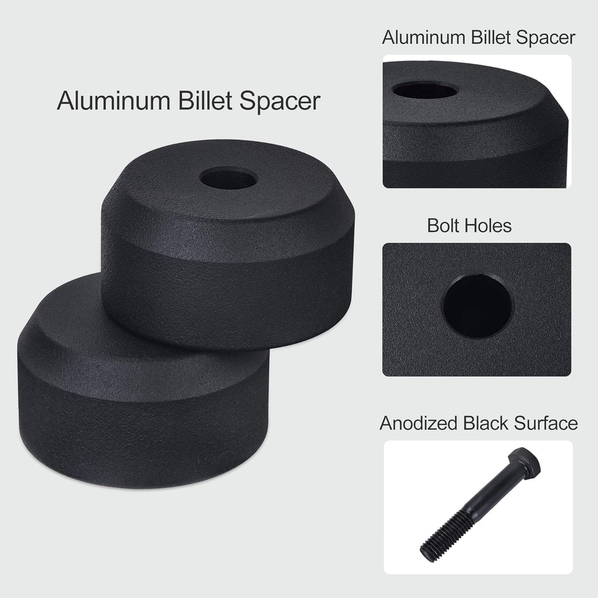 Material: front spacers is made of high-quality aircraft aluminum, which is strong and compressive, and has greatly enhanced anti-corrosion and anti-rust performance. CNC precision machining, precise hole position.