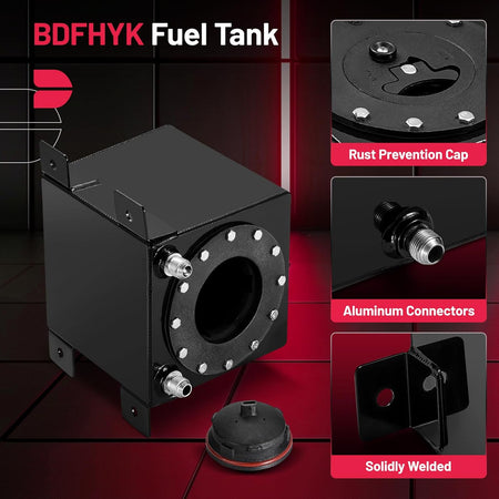 BDFHYK 1 Gallon Fuel Cell Gas Tank Aluminum Polished Black with Level Sender 7" (L) x 6.75" (W) x 8" (H) Racing Street Drift Strip Fuel Tank Fuel Cap