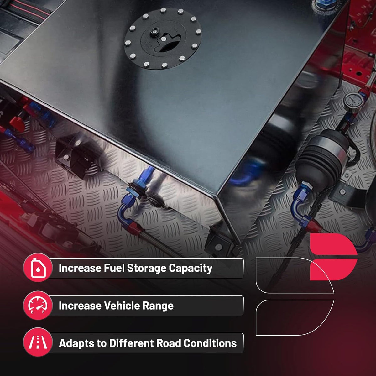 Package includes: 1 x Aluminum 1 Gallon Fuel Cell and splash-proof foam. This fuel tank is universal compatible with hot rods/street racing/track cars/trucks/SUVs etc.