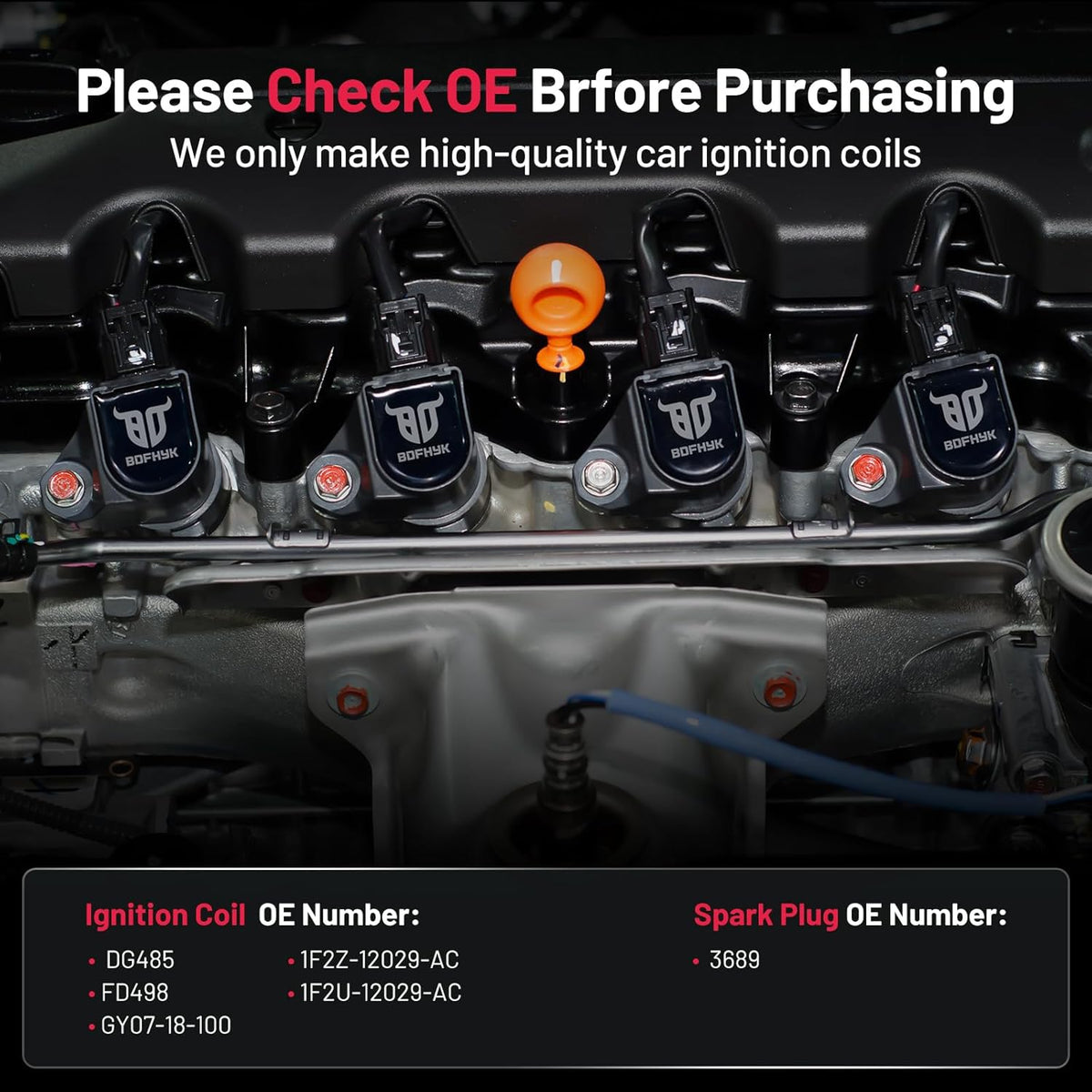 【About BDFHYK】A professional auto parts manufacturer with mature industry lines. We have our factory and experienced developer. It's been more than 10 years that we have served different customers from different areas. We do our best to hear from customers and update our coil packs and spark plugs. If you have more problems, please be free to contact us. Choose BDFHYK,choose good service.