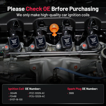 【Features of ignition coil:】High quality ignition coils are made of silicon steel material, Japan-imported rubber, and Germany-imported varnished wire, which makes our coils have a long using life and better quality. ‼Please check OE:DG485 FD498 1F2Z-12029-AC 1F2U-12029-AC GY07-18-100.