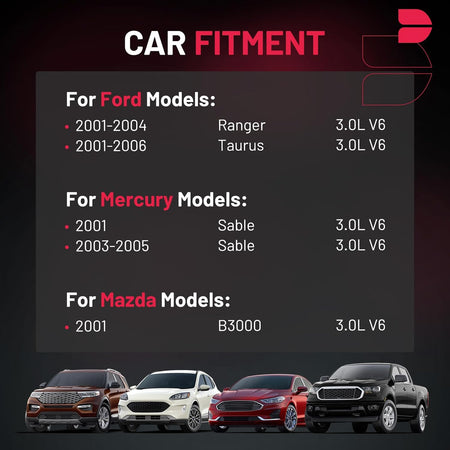 【Basic Info:】Ignition Coil DG485 & Spark Plugs 3689 Compatible with Ford 2001-2004 Ranger,2001-2006 Taurus; Compatible with Mazda 2001 B3000; Compatible with Mercury 2001 Sable,2003-2005 Sable. Please check detail fitting info from pics or detail page. Please choose suitable coil pack and plugs with confidence.