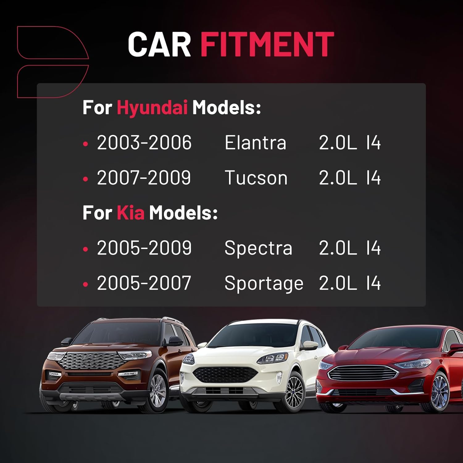 【Basic Info:】Ignition Coil UF419 & Spark Plugs 4503 Compatible with Hyundai 2003-2006 Elantra, 2007-2009 Tucson; Compatible with Kia 2005-2009 Spectra, 2005-2007 Sportage. Please check detail fitting info from pics or detail page. Please choose suitable coil pack and plugs with confidence.
