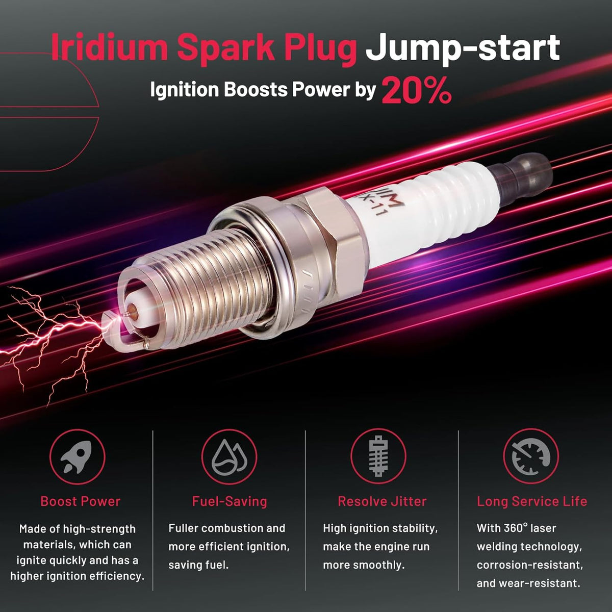 【Features of spark plug:】Professional spark plugs is made of high-tech materials. We choose iridium electrode and unique ceramic to make sure your car can have a new life after being installed. The car will start quickly and speed up in a short time as powerful as a new car. ‼Please check OE:4503.