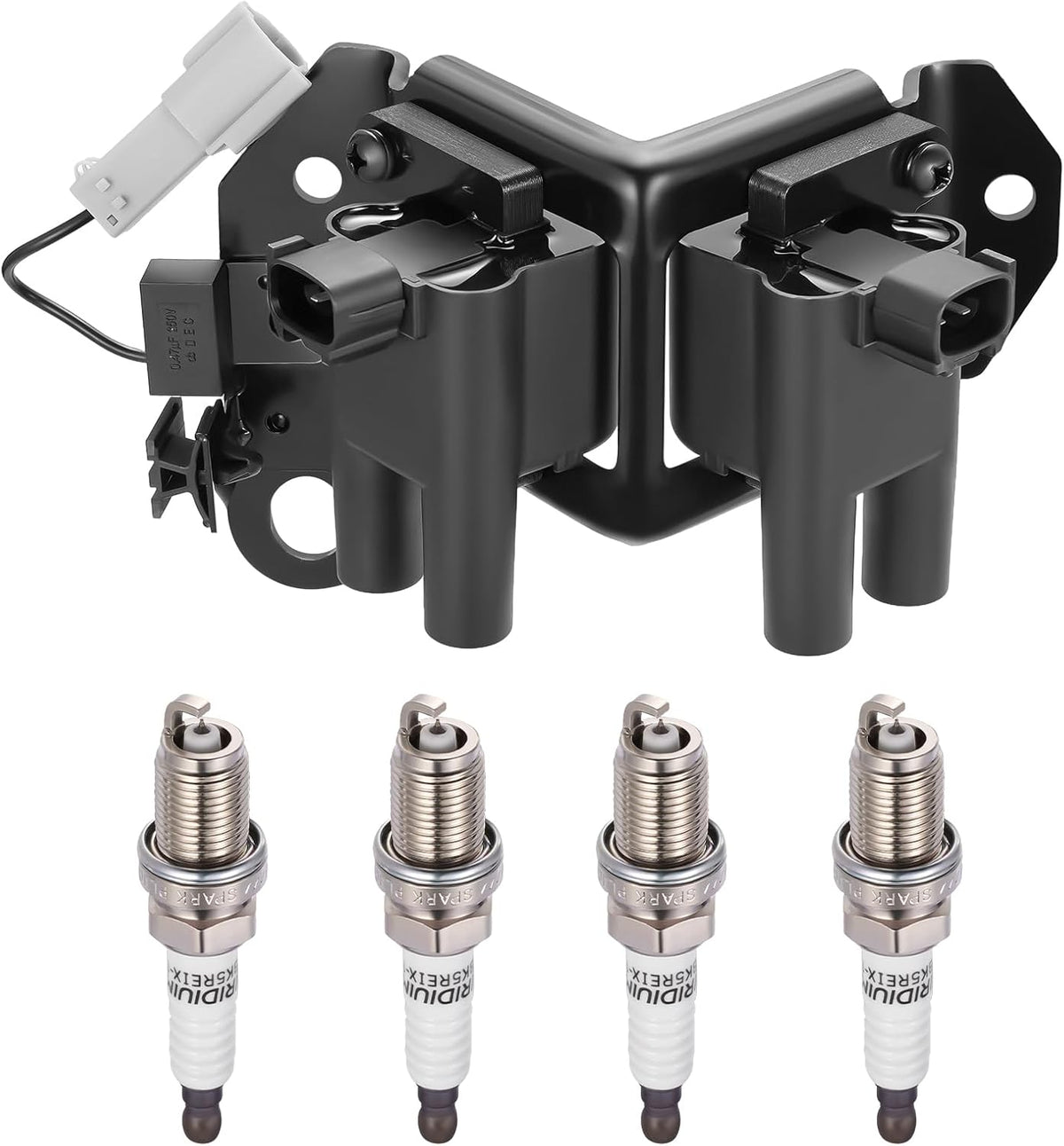 BDFHYK 1 Ignition Coil Pack UF308 and 4 Iridium Spark Plug 2382 Compatible with Hyundai Accent 2000-2003 1.5L l4 Coil for 2730122600 04887031