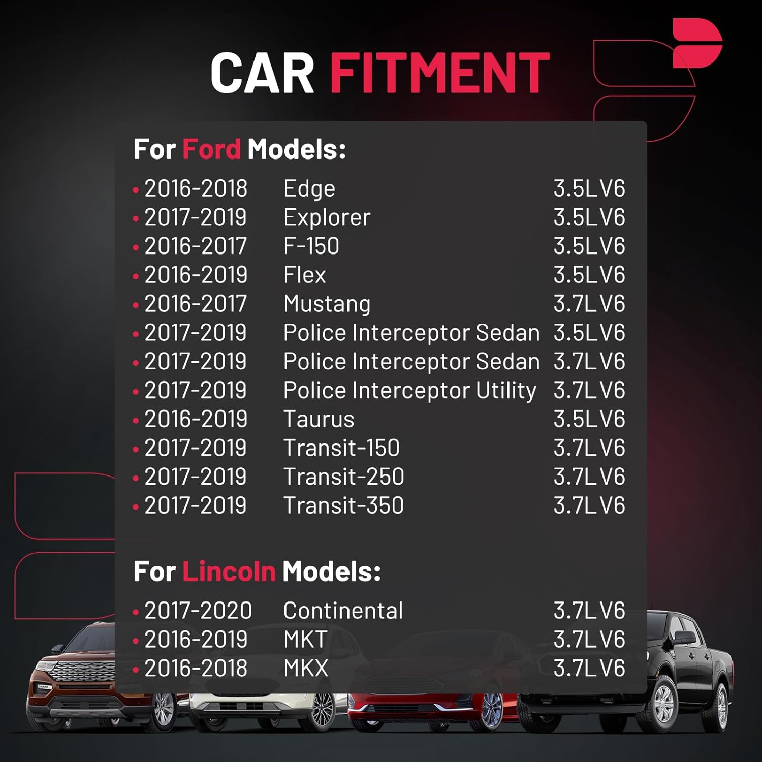 【Compatible with】Please confirm compatibility based on your vehicle's year, brand, model, and the OE number of the replacement coils.Ignition coils Compatible with Ford Edge Explorer F-150 Flex Mustang Police Interceptor Sedan Police Interceptor Utility Taurus Transit-150 Transit-250 Transit-350, Compatible with Lincoln Continental MKT MKX.