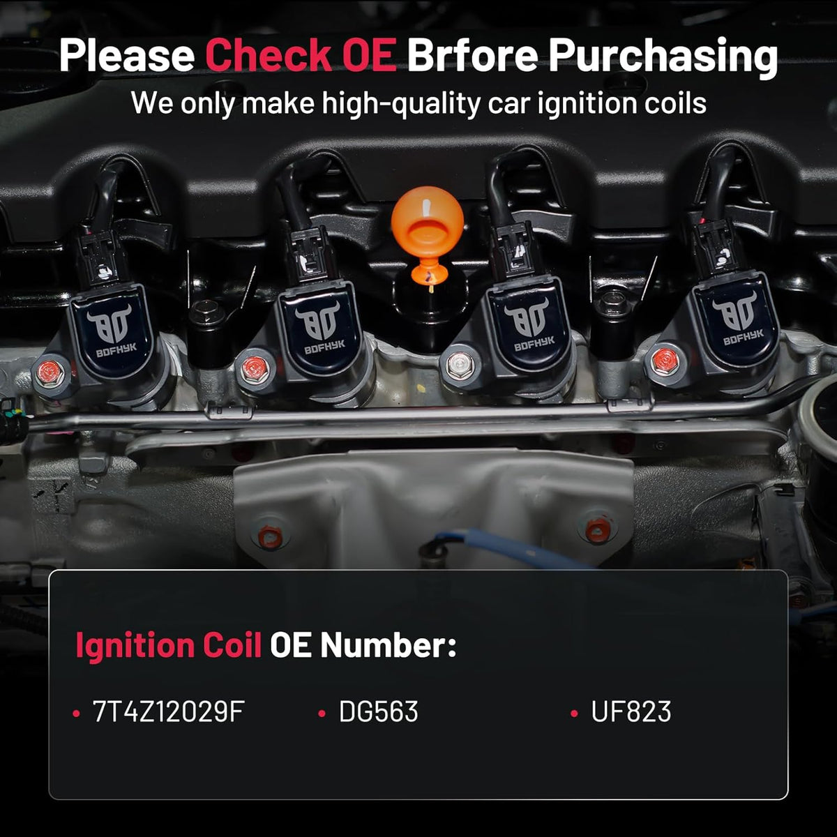 【OE Standard Performance】Exquisite craftsmanship design, 100% brand new high quality ignition coil pack, OE grade durability, bring you ultimate comfortable driving experience.OE No. 7T4Z12029F DG563 UF823.