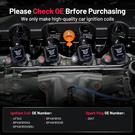 【Features of ignition coil:】High quality ignition coils are made of silicon steel material, Japan-imported rubber, and Germany-imported varnished wire, which makes our coils have a long using life and better quality. ‼Please check OE:BP4W1810X BP4W1810XA BP4W1810XB BP4W1810XB9U UF343.