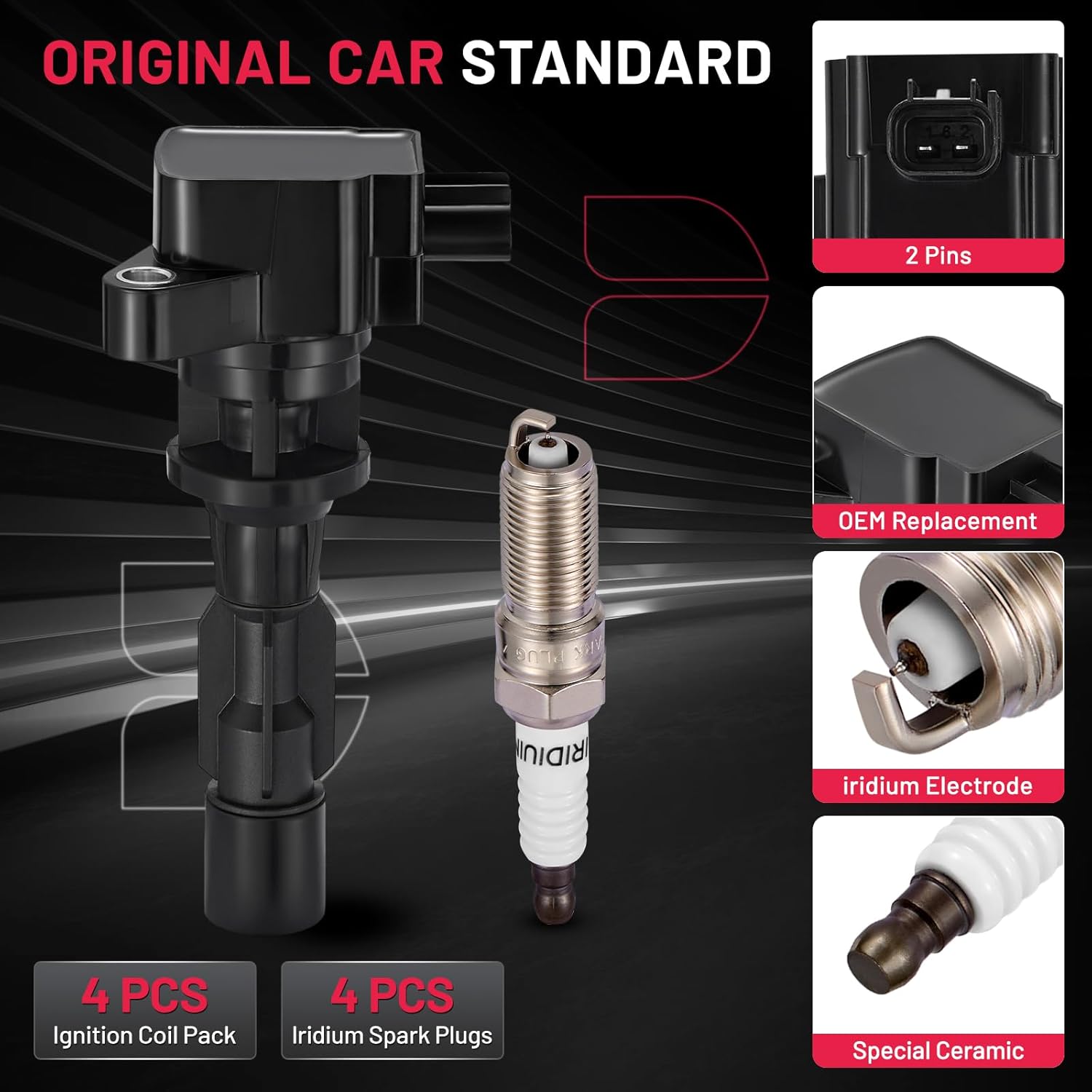 BDFHYK 4 Ignition Coil Pack UF516 and 4 Iridium Spark Plug SP530 Compatible with Ford 2006-2009 Fusion 2.3L l4; Compatible with Mercury 2006-2009 Milan 2.3L l4 Coil for 6E5Z12029AA