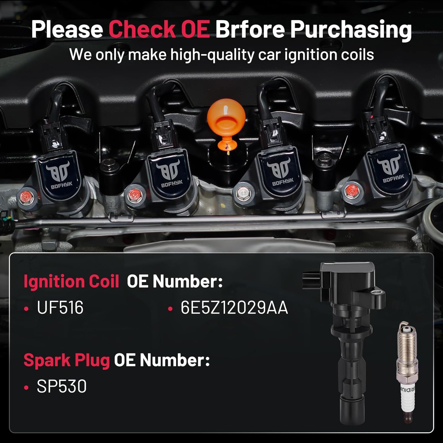- OE Number Ignition coil Replace# UF516, 6E5Z12029AA; Spark plug Replace#SP530