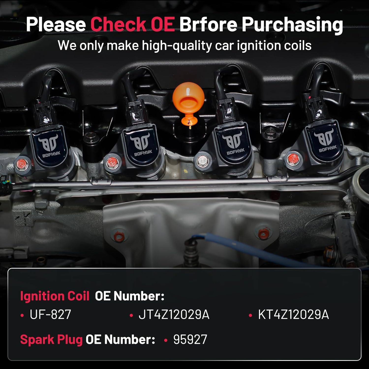 - OE Number Ignition coil Replace# UF-827, JT4Z12029A, KT4Z12029A; Spark plug Replace#95927