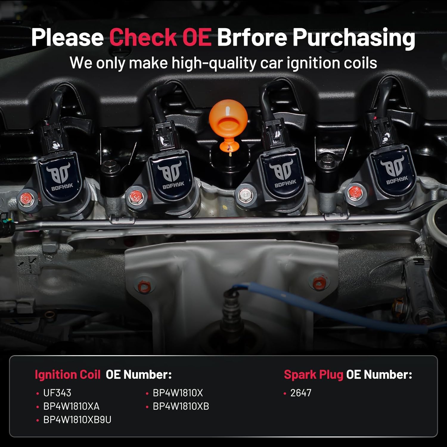 【Features of ignition coil:】High quality ignition coils are made of silicon steel material, Japan-imported rubber, and Germany-imported varnished wire, which makes our coils have a long using life and better quality. ‼Please check OE:BP4W1810X BP4W1810XA BP4W1810XB BP4W1810XB9U UF343.