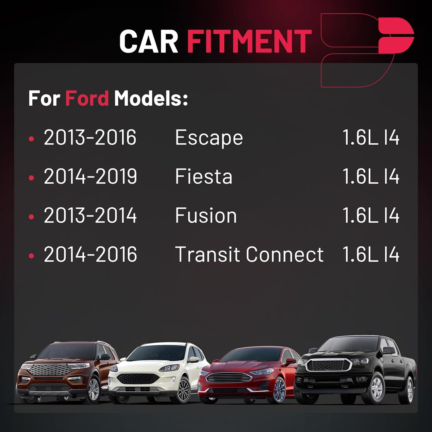 【Compatible with】Please confirm compatibility based on your vehicle's year, brand, model, and the OE number of the replacement coils.Ignition coils Compatible with Ford 2013-2016 Escape, 2014-2019 Fiesta, 2013-2014 Fusion, 2014-2016 Transit Connect.