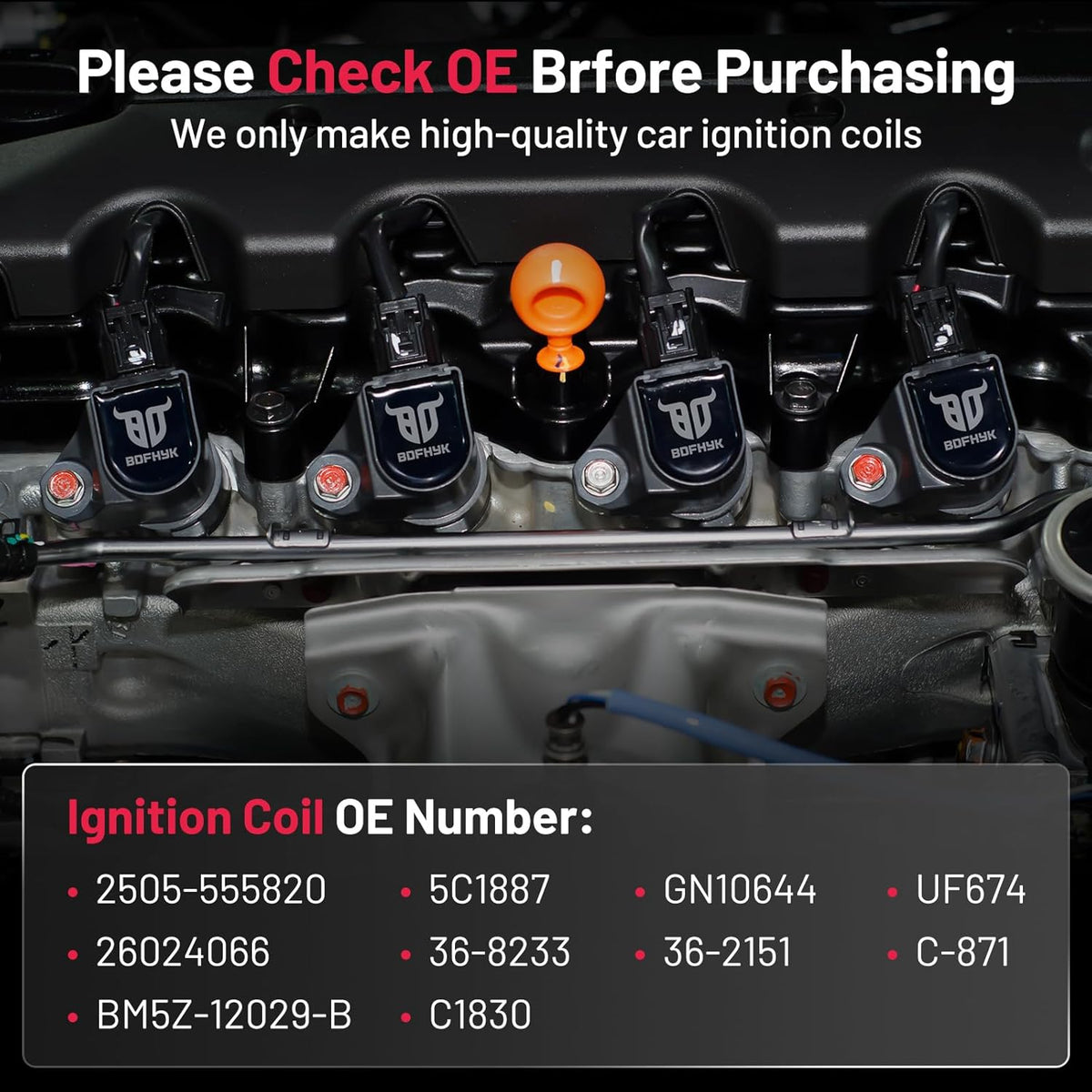 【OE Standard Performance】Exquisite craftsmanship design, 100% brand new high quality ignition coil pack, OE grade durability, bring you ultimate comfortable driving experience.OE No. 2505-555820 5C1887 GN10644 26024066 36-8233 36-2151 C-871 UF674 C1830 BM5Z-12029-B.