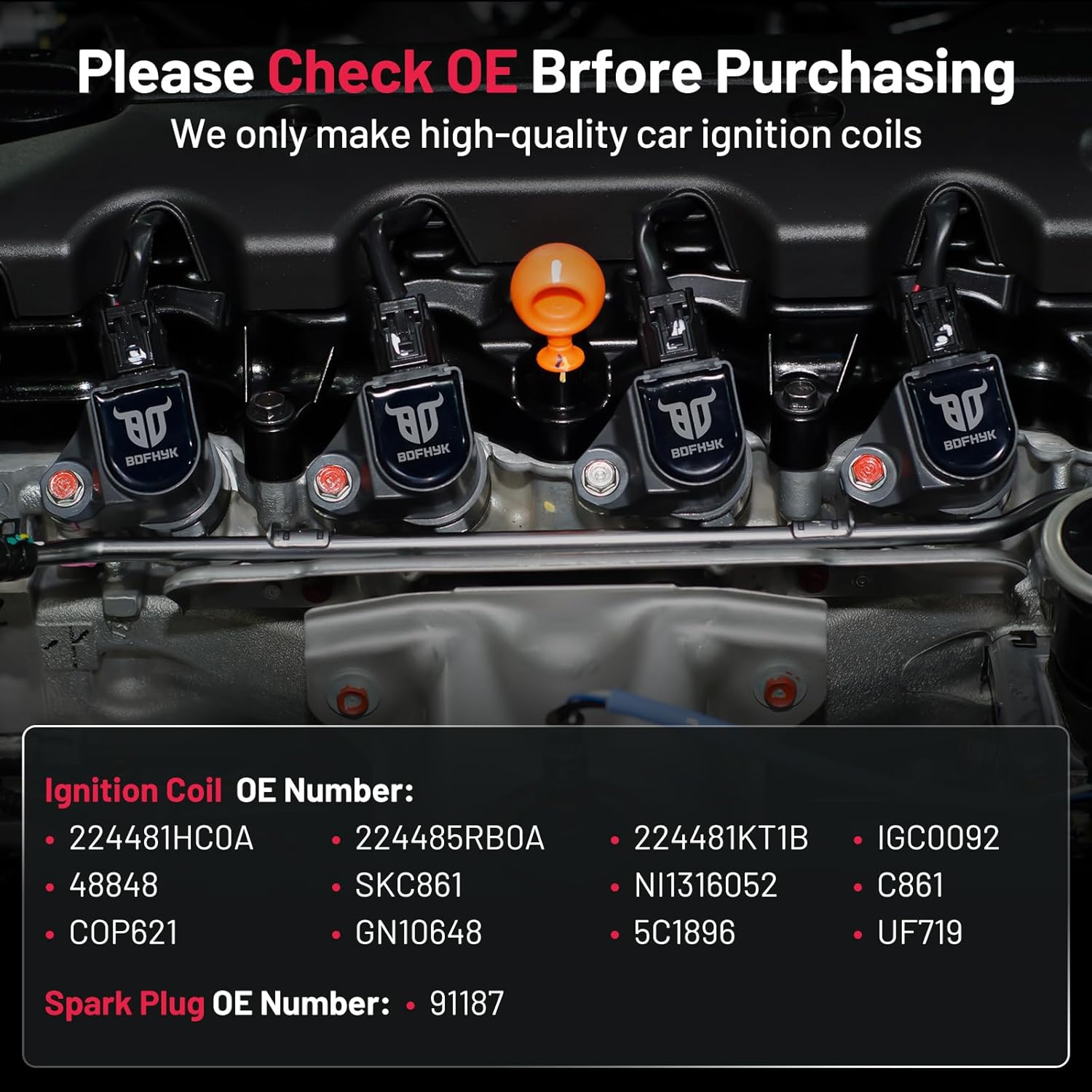 【About BDFHYK】A professional auto parts manufacturer with mature industry lines. We have our factory and experienced developer. It's been more than 10 years that we have served different customers from different areas. We do our best to hear from customers and update our coil packs and spark plugs. If you have more problems, please be free to contact us. Choose BDFHYK,choose good service.