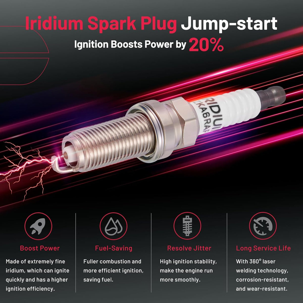 【Features of spark plug:】Professional spark plugs is made of high-tech materials. We choose iridium electrode and unique ceramic to make sure your car can have a new life after being installed. The car will start quickly and speed up in a short time as powerful as a new car. ‼Please check OE:91187.