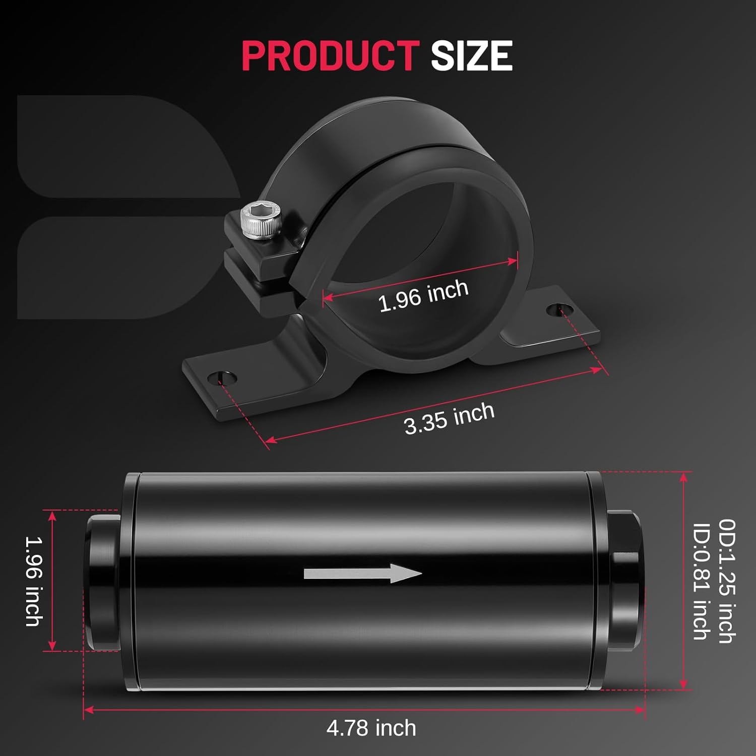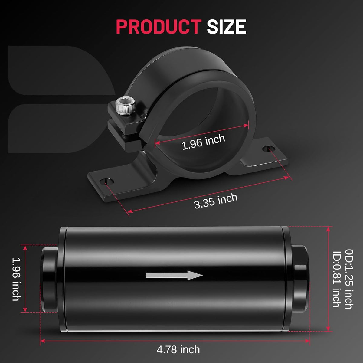 Function: The 100-micron stainless steel filter effectively captures contaminants, preventing dirt and debris from reaching your fuel system. This enhances engine performance and helps protect your fuel pump and injectors from premature wear