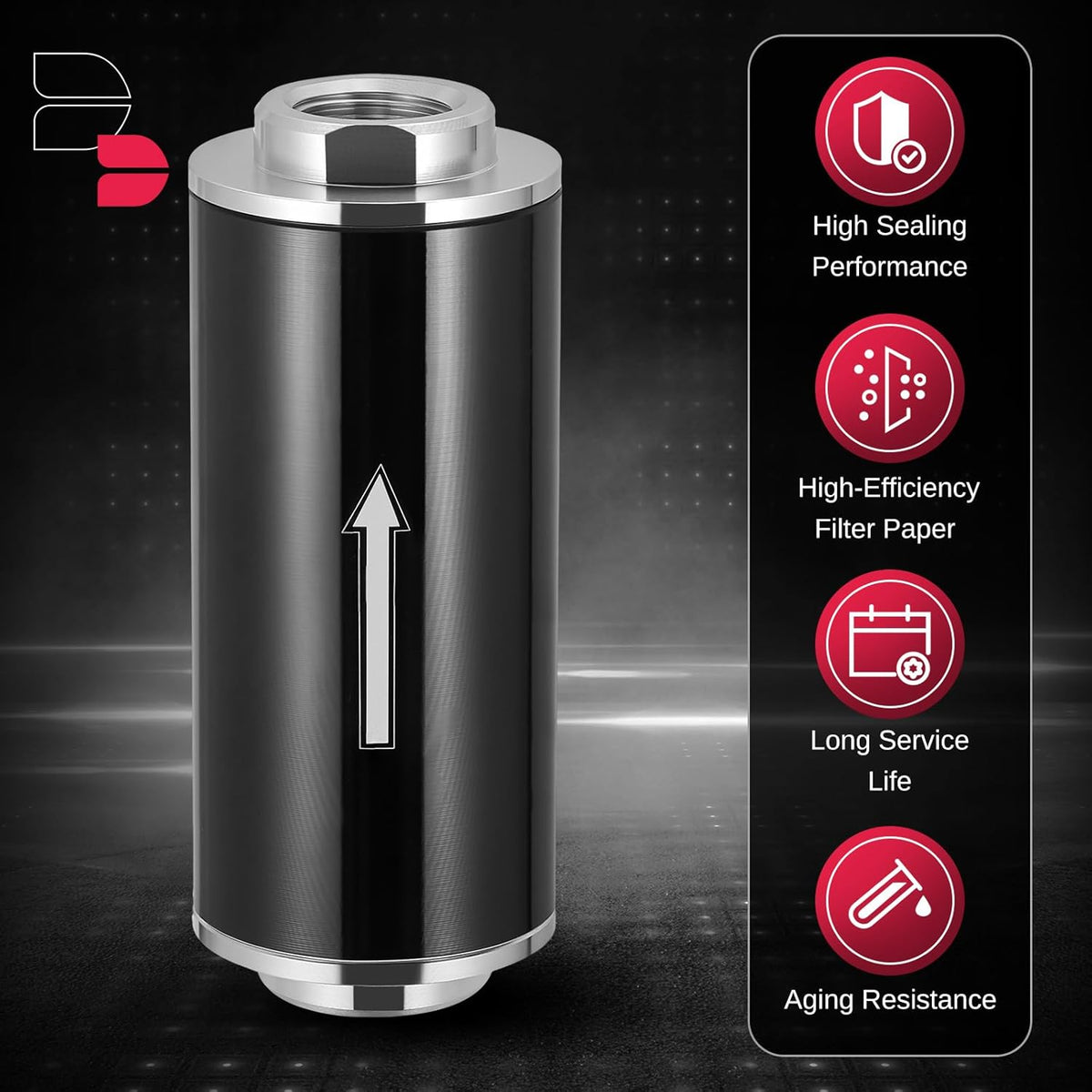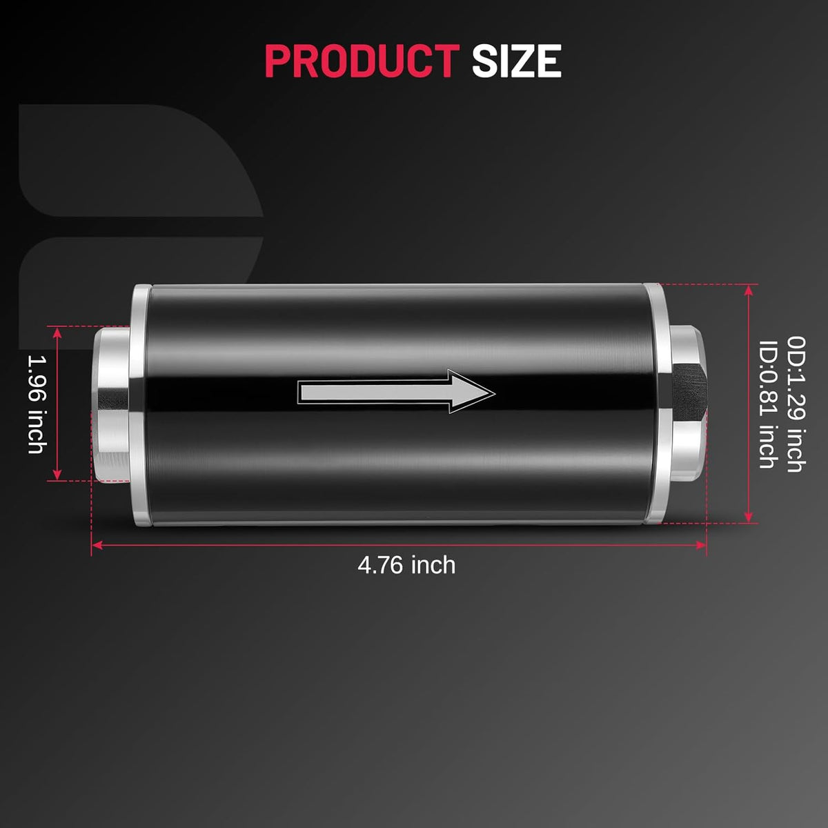 Durable Construction: This inline fuel filter is made of T-6061 high-quality aluminum alloy, and its filter is made of stainless steel, which is easy to remove and clean. Its durable structure prolongs its lifespan, providing a reliable solution for your fuel filtration needs