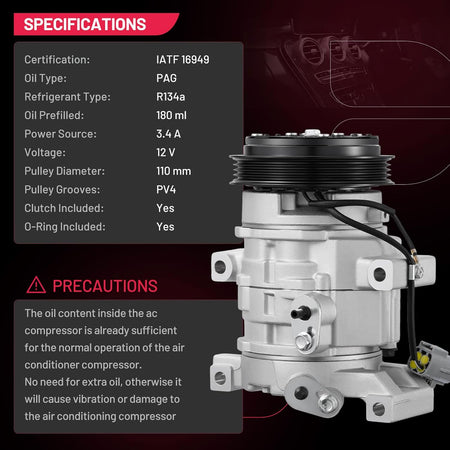Durable & Low Noise - AC compressor is constructed of heavy-duty materials for superior durability and wear resistance. Designed for low-noise operation, it provides smooth cooling performance.