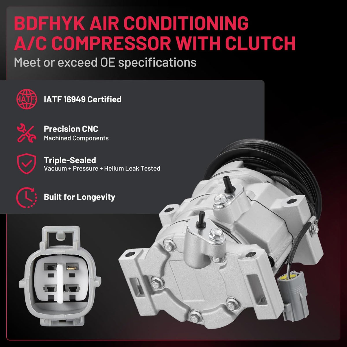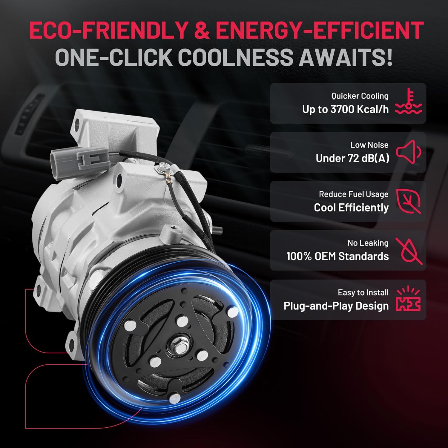 Reliability & Performance - 100% Brand New | IATF 16949 Certified | 50,000-Mile Accelerated Life Tested | Triple-Sealed: Vacuum + Pressure + Helium Leak Tested (99.9% Leak-Free) | Precision CNC-Machined Components | Faster Cooling & Quieter vs. Standard Compressors | Built for Longevity