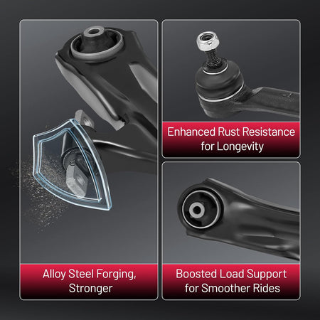 【Control Arm Features】 The control arm improves stability, handling, and driving comfort, with a protective finish that helps extend service life. Made from forged alloy steel, it delivers reliable performance, reduces noise, and ensures accurate fitment for safe and consistent driving