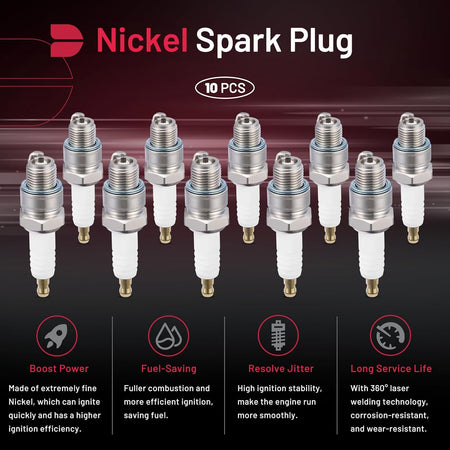BDFHYK 1134 universal Spark Plugs Compatible with Yamaha for Tohatsu for Mariner 2-Stroke Outboard Engines Replacement for BR8HS-10 Set of 10