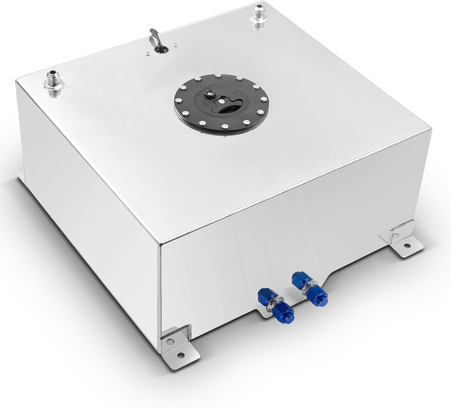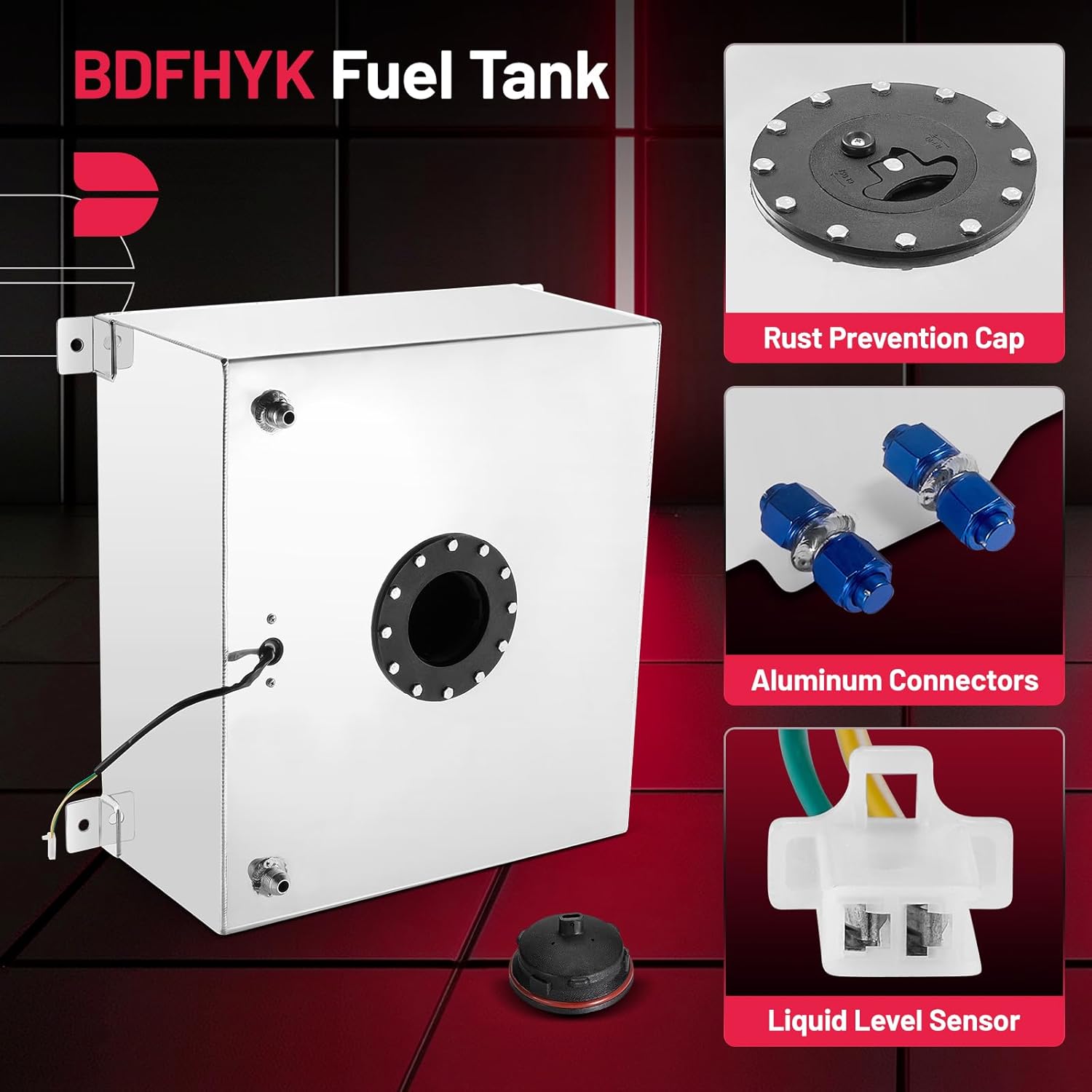 BDFHYK 12 Gallon Fuel Cell Gas Tank Aluminum Polished Sliver with Level Sender 19.9" (L) x 18" (W) x 9.05" (H) Racing Street Drift Strip Fuel Tank Fuel Cap