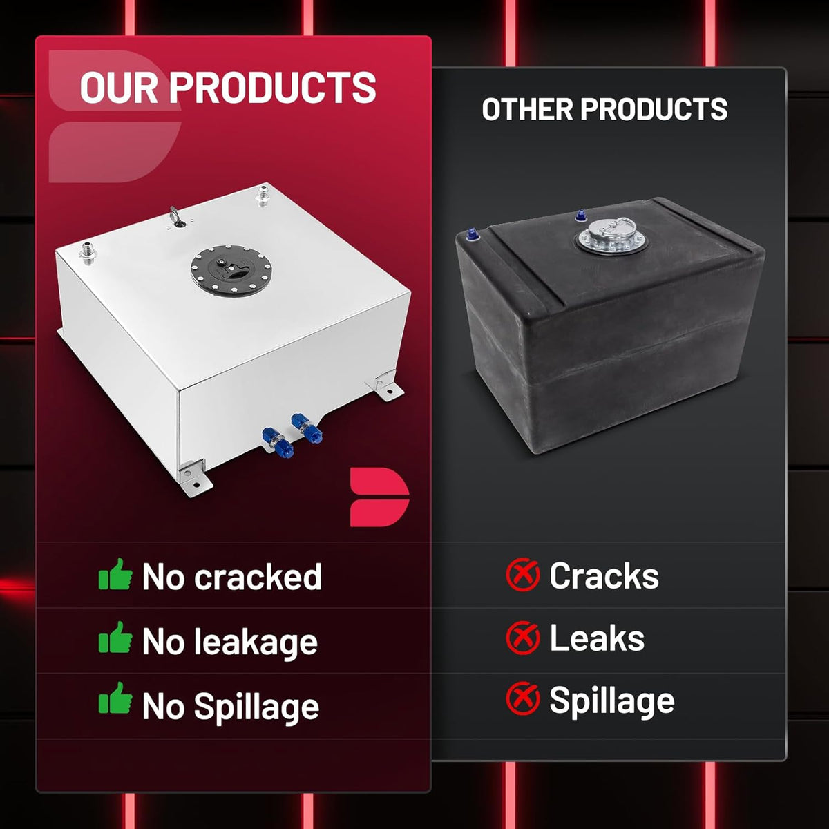 Package includes: 1 x Aluminum 12 Gallon Fuel Cell with built-in level sensor (3-90 ohm) and splash-proof foam. This fuel tank is universal compatible with hot rods/street racing/track cars/trucks/SUVs etc.