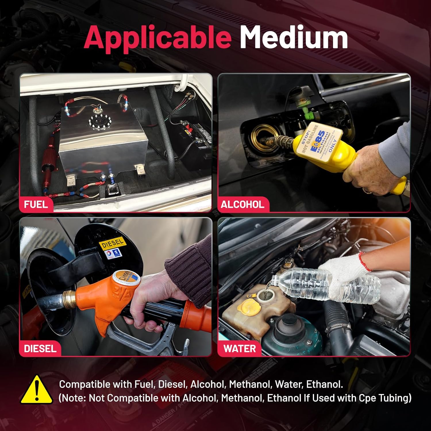 Application: Drift Fuel Cell increase the fuel storage capacity of your vehicle and are compatible with fuel, diesel, alcohol, methanol, water, and ethanol. (Note: not compatible with alcohol, methanol, ethanol if used with CPE fuel line)
