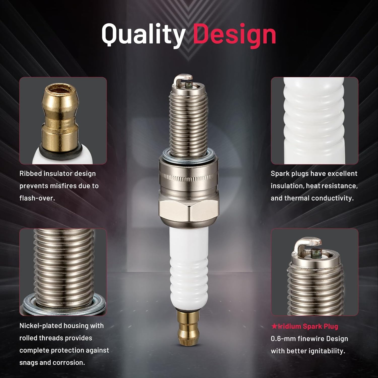 【Relive Performance】:OE standard performance and durability TS16949 certified manufacturer. All center electrodes are made from extremely fine iridium electrodes for good ignition performance. Insulators are made from isostatic ceramics for high density, strength, and good insulation