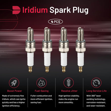 BDFHYK 1275 Universal Iridium Spark Plug Compatible with Kawasaki Compatible with Yamaha for Husaberg for Suzuki, Motorcycle Spark Plugs Engine Replacement for CR8E, Set of 4