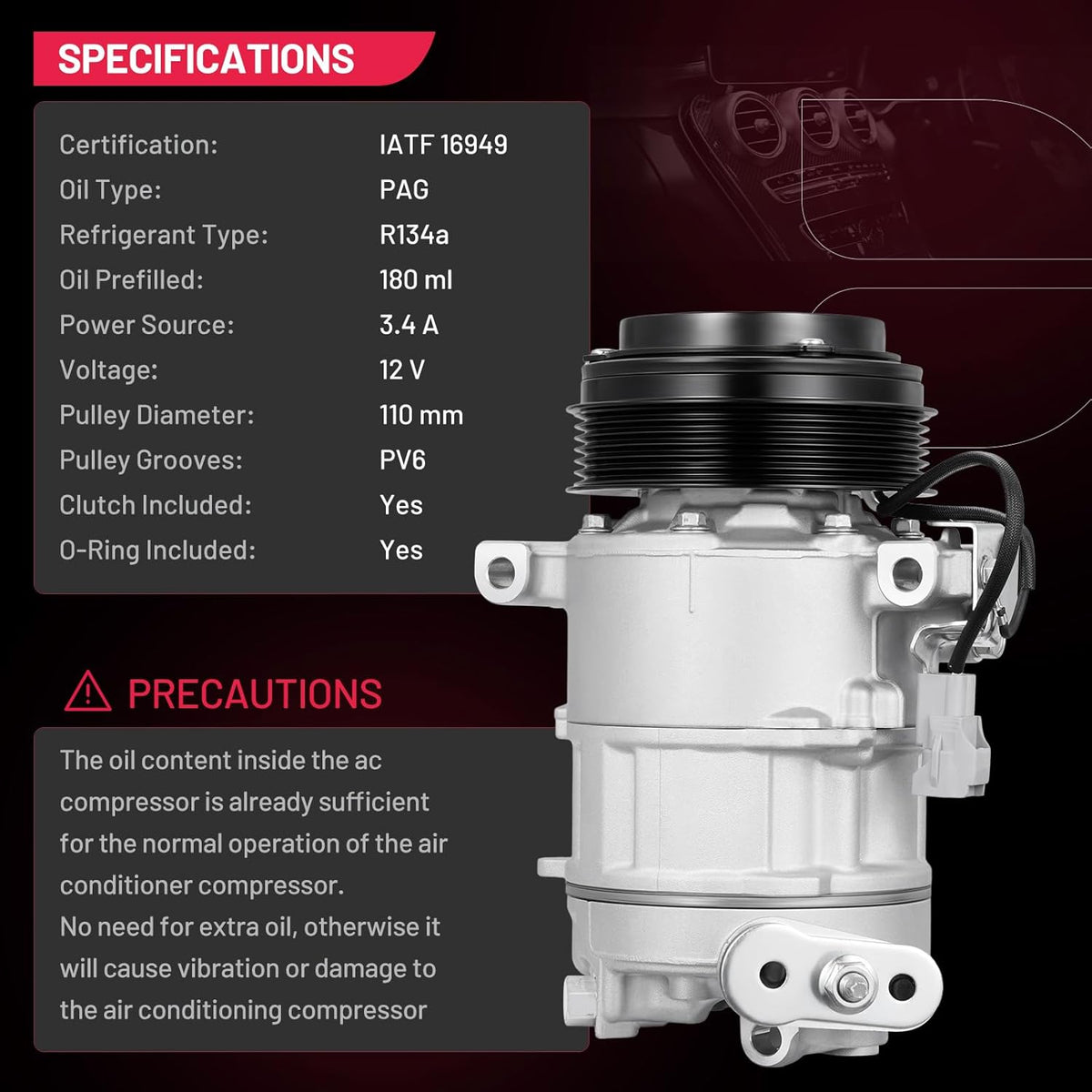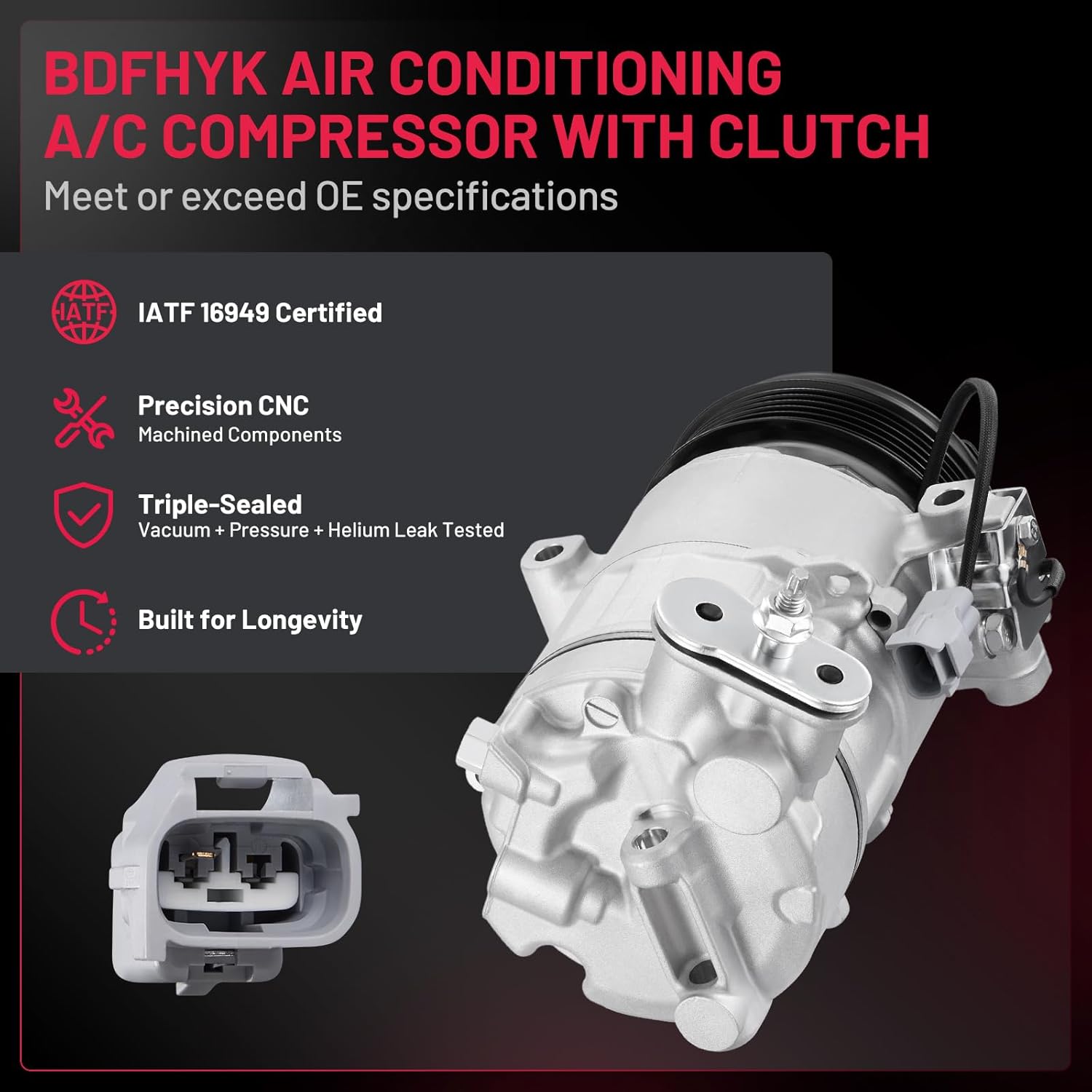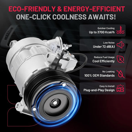 Reliability & Performance - 100% Brand New | IATF 16949 Certified | 50,000-Mile Accelerated Life Tested | Triple-Sealed: Vacuum + Pressure + Helium Leak Tested (99.9% Leak-Free) | Precision CNC-Machined Components | Faster Cooling & Quieter vs. Standard Compressors | Built for Longevity
