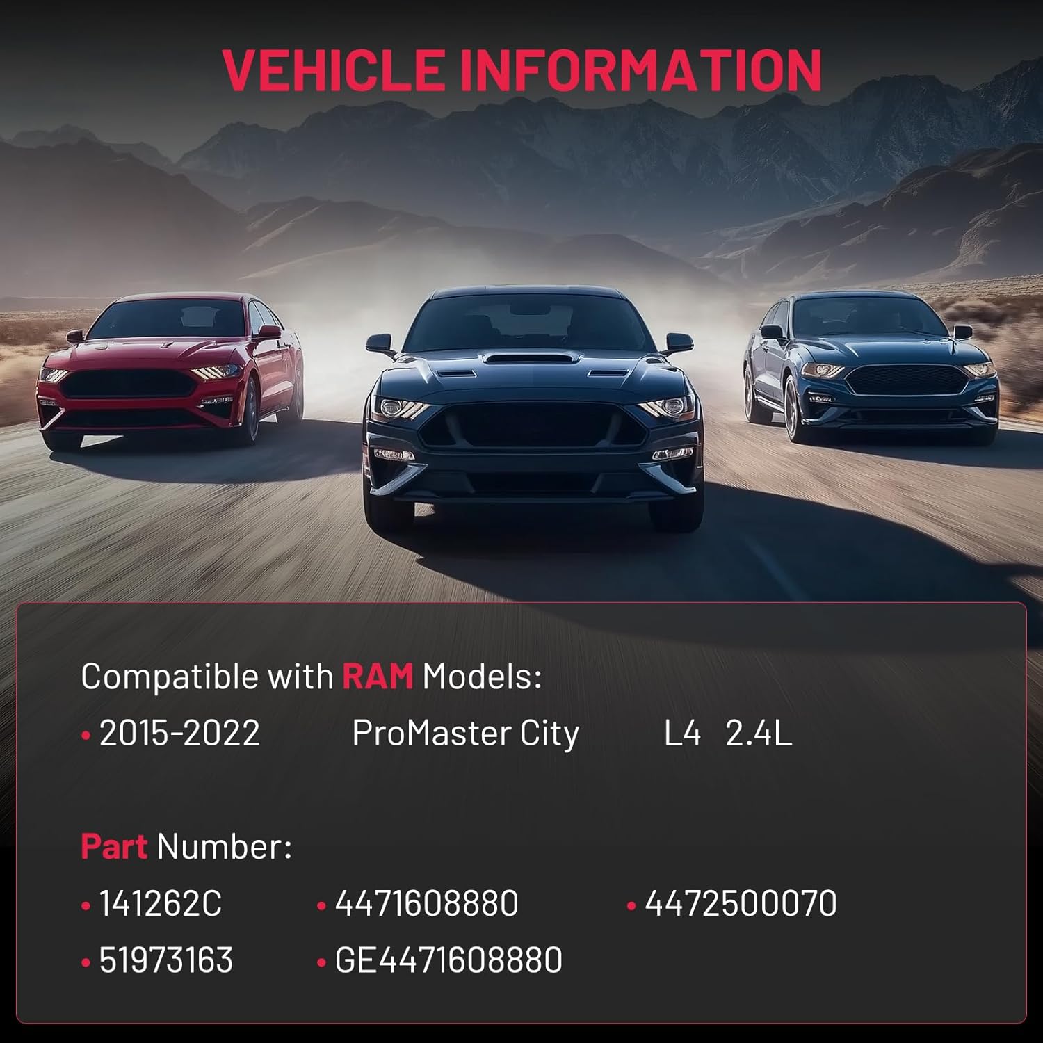 Vehicle Fitment - Automotive AC Compressor and A/C Clutch kit Compatible with Ram ProMaster City L4 2.4L 2015-2022. NOTE: Please use "amazon confrmed fit" tool to enter your year, make, and model to avoid mismatch with the model can not be used
