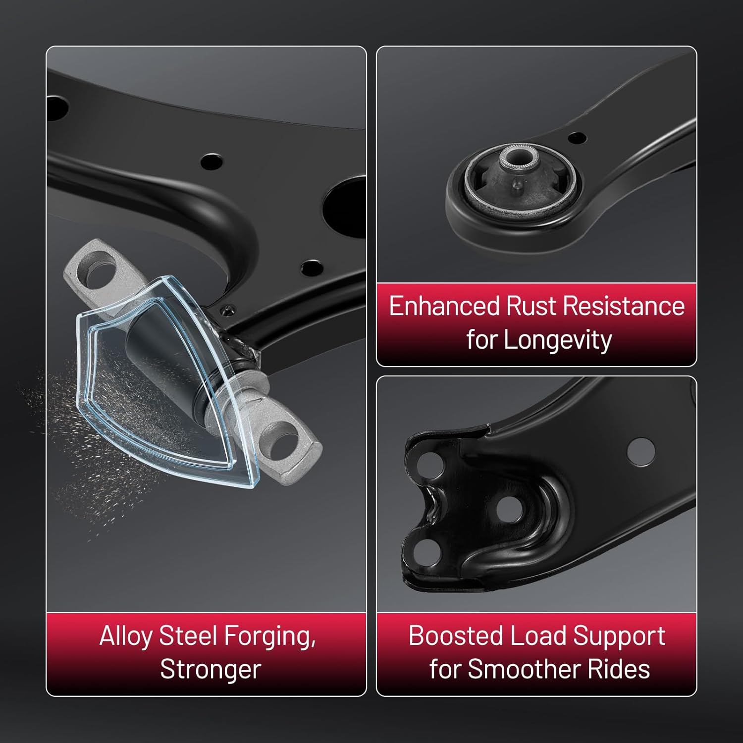 【Control Arm Features】 The control arm improves stability, handling, and driving comfort, with a protective finish that helps extend service life. Made from forged alloy steel, it delivers reliable performance, reduces noise, and ensures accurate fitment for safe and consistent driving