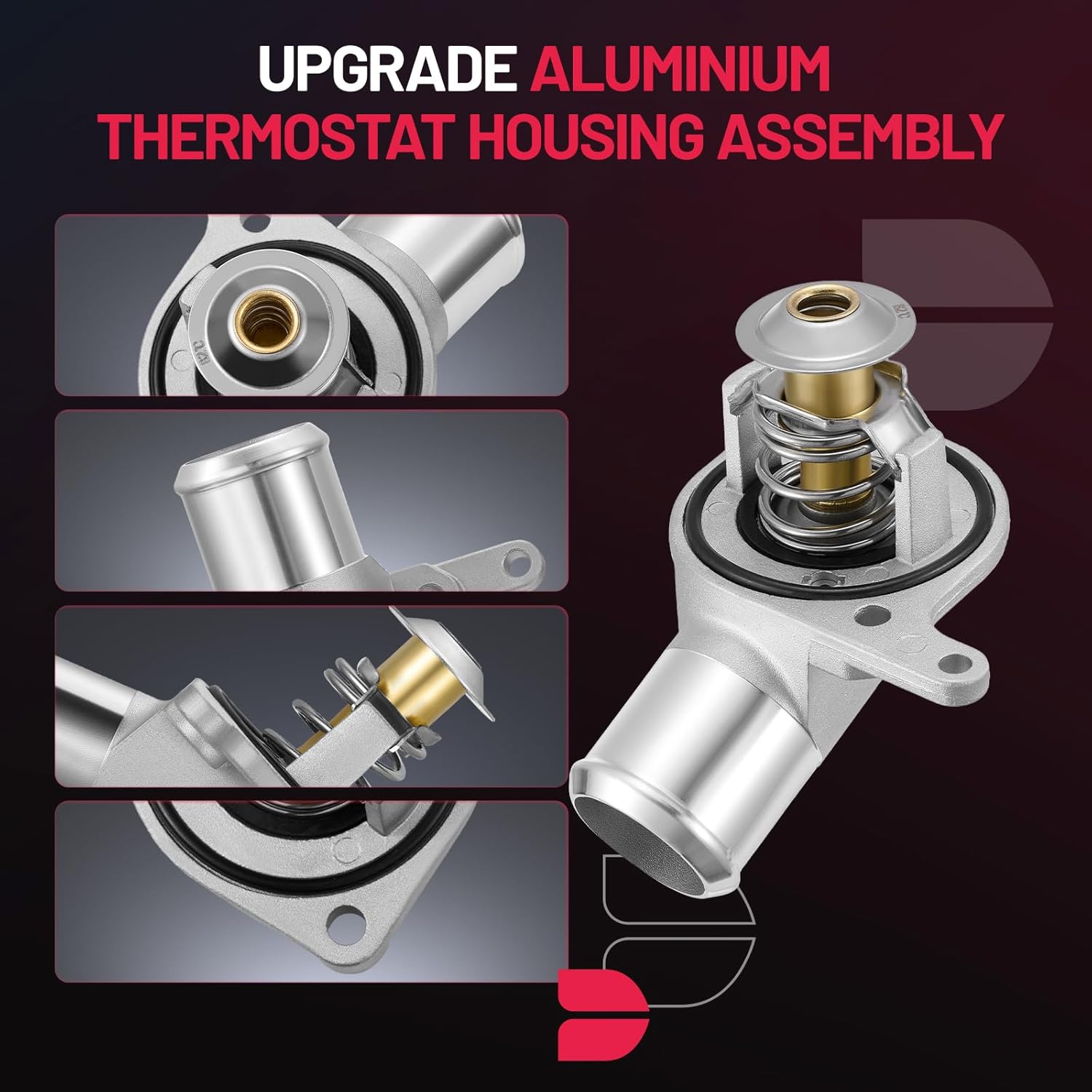 【High Quality Construction】:The upgraded aluminum coolant thermostat housing assembly is made of durable aluminum alloy, which provides greater durability and strength than traditional plastic housings, reducing the risk of cracking.