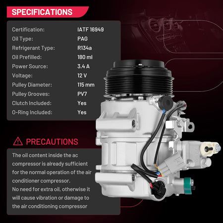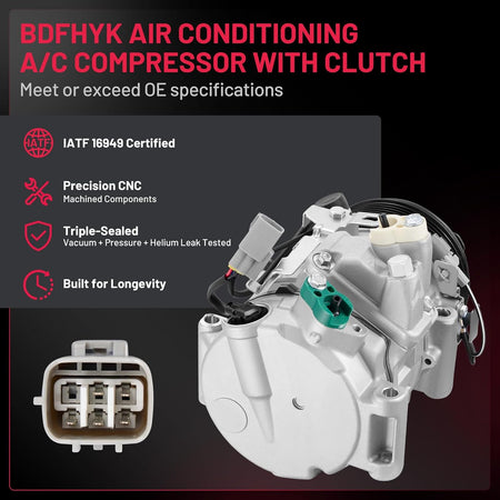 Superior Quality - The A/C Compressors for car are built in a IATF 16949:2016 Certified facility, meet or exceed OE specifications. Mechanically tested prior to leaving the factory ensures optimal performance and enhanced durability. Great life cycles