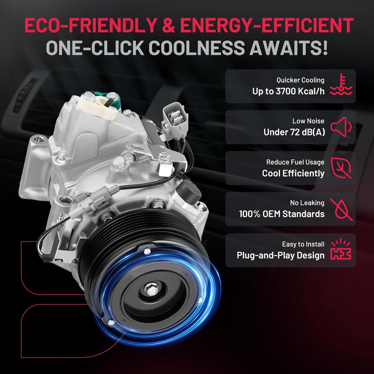 Durable & Low Noise - AC compressor is constructed of heavy-duty materials for superior durability and wear resistance. Designed for low-noise operation, it provides smooth cooling performance