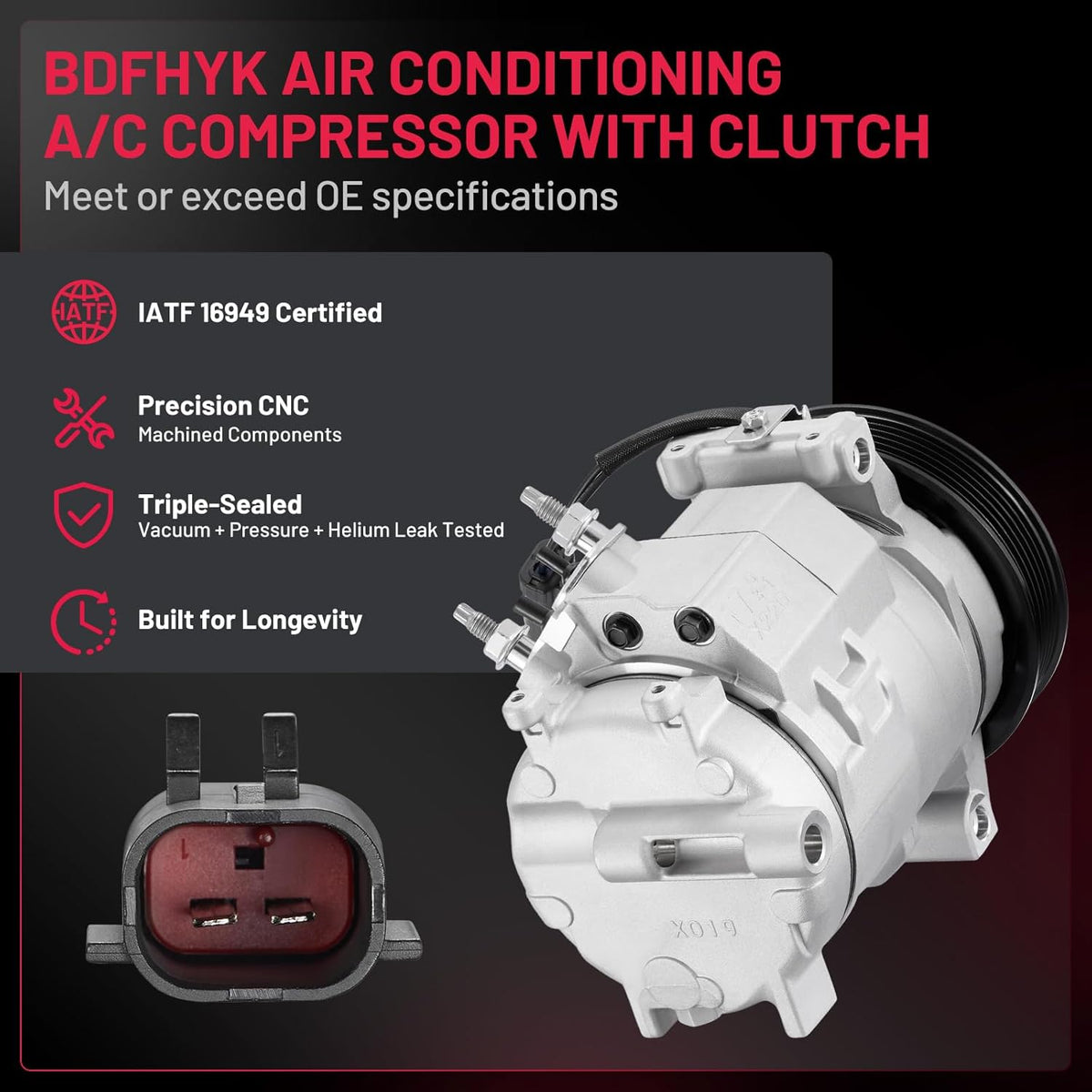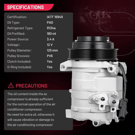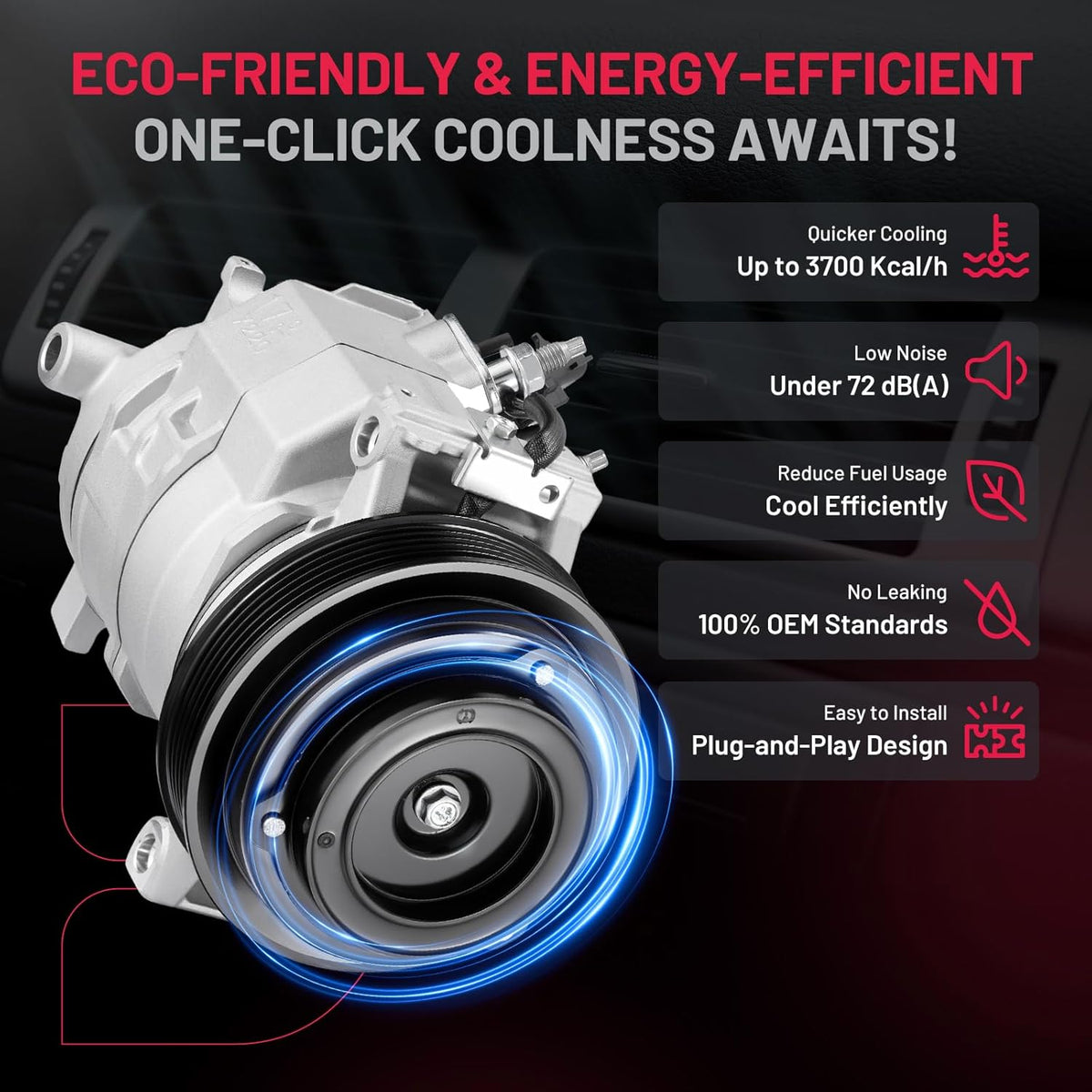 Reliability & Performance - 100% Brand New | IATF 16949 Certified | 50,000-Mile Accelerated Life Tested | Triple-Sealed: Vacuum + Pressure + Helium Leak Tested (99.9% Leak-Free) | Precision CNC-Machined Components | Faster Cooling & Quieter vs. Standard Compressors | Built for Longevity