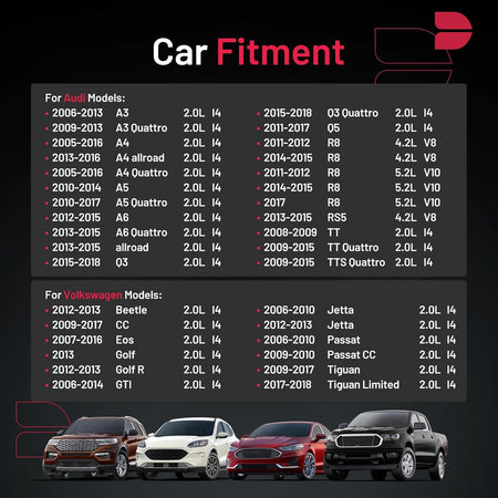 【Compatibility Information】:Spark Plug 1675 Compatible with A3 A3 Quattro A4 A4 allroad A4 Quattro A5 A5 Quattro A6 A6 Quattro allroad Q3 Q3 Quattro Q5 R8 RS5 TT TT Quattro TTS Quattro; Compatible with Tiguan Beetle CC Eos Golf Golf R GTI Jetta Passat Passat CC.Please see images or details page for complete Compatibility information.