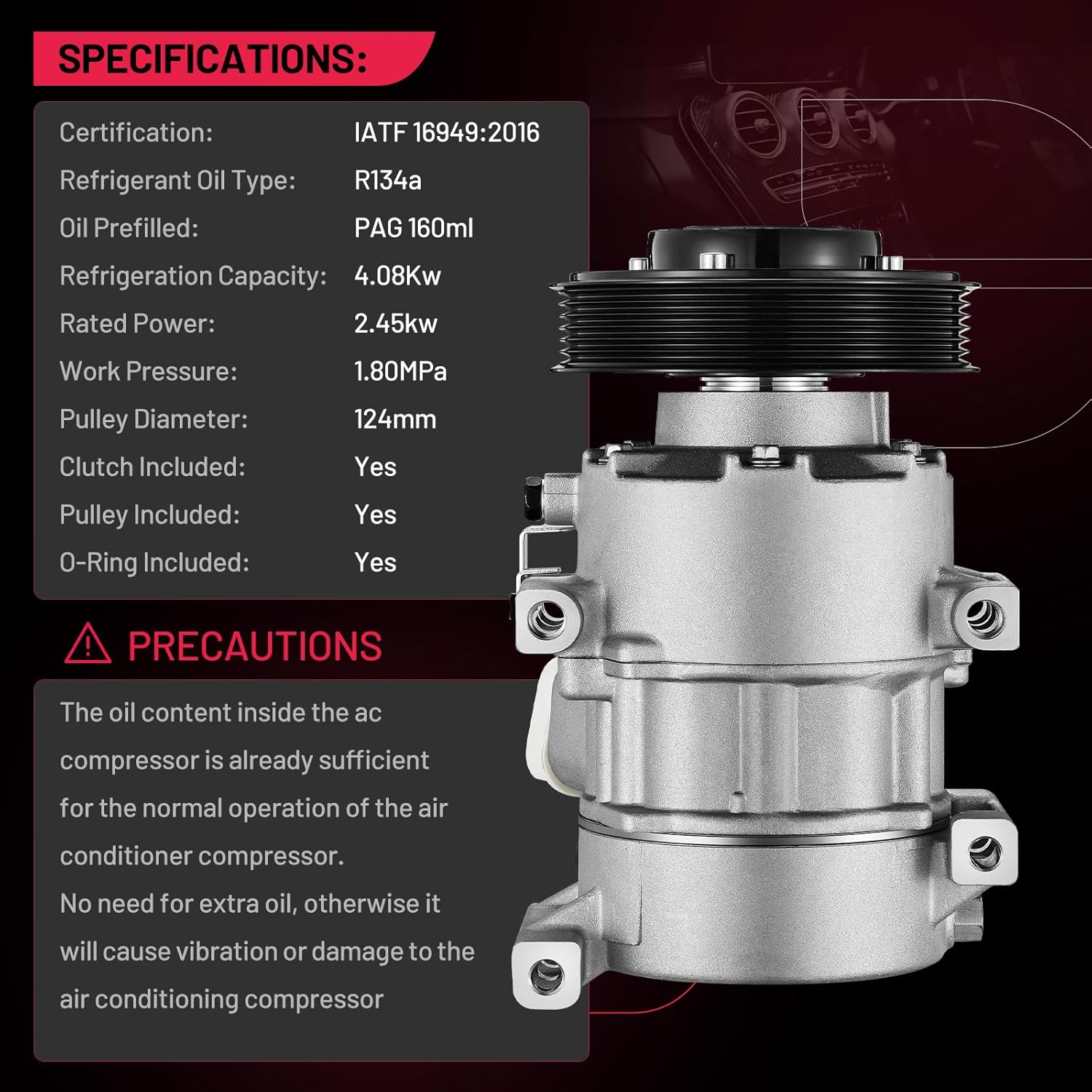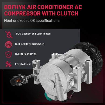 Superior Quality - The A/C Compressors for car are built in a IATF 16949:2016 Certified facility, meet or exceed OE specifications. Mechanically tested prior to leaving the factory ensures optimal performance and enhanced durability. Great life cycles.