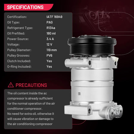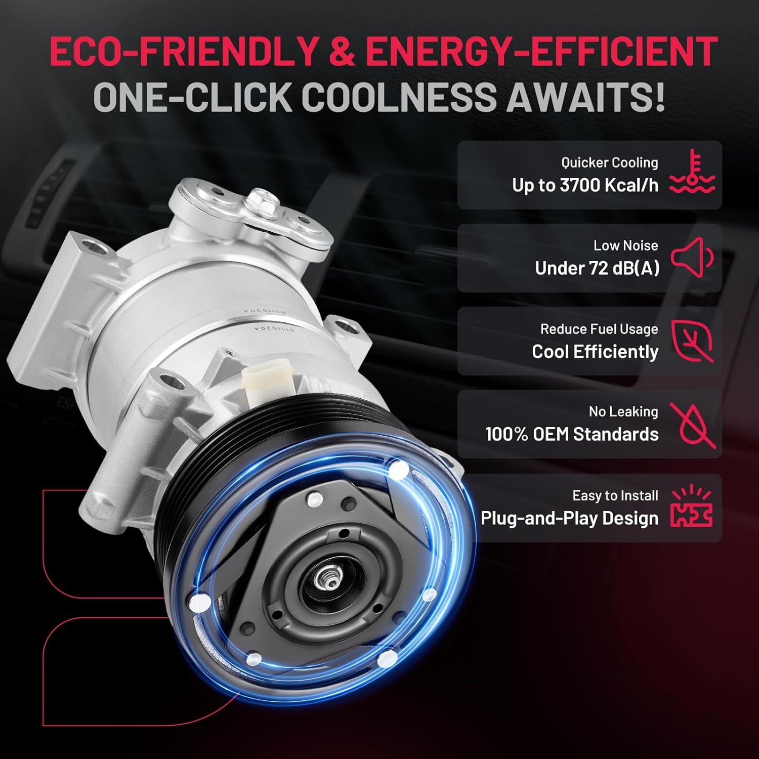 Reliability & Performance - 100% Brand New | IATF 16949 Certified | 50,000-Mile Accelerated Life Tested | Triple-Sealed: Vacuum + Pressure + Helium Leak Tested (99.9% Leak-Free) | Precision CNC-Machined Components | Faster Cooling & Quieter vs. Standard Compressors | Built for Longevity