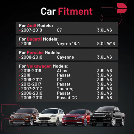 【Compatibility Information】:Spark Plug 1961 Compatible with Audi 2007-2010 Q7; Compatible with Bugatti 2006 Veyron 16.4; Compatible with Porsche 2008-2010 Cayenne; Compatible with VW 2018-2019 Atlas, 2009-2017 CC, 2006-2010 Passat, 2012-2018 Passat, 2009-2010 Passat CC, 2007-2017 Touareg.Please see images or details page for complete Compatibility information.