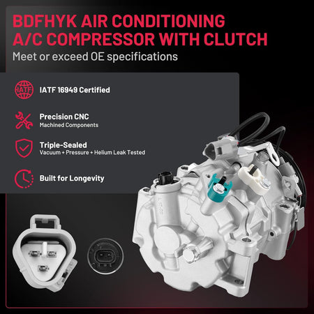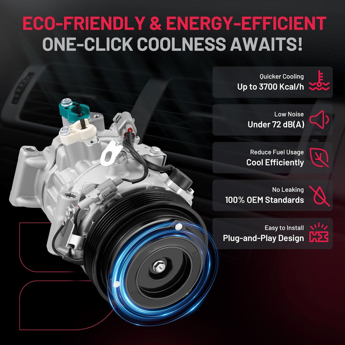 Reliability & Performance - 100% Brand New | IATF 16949 Certified | 50,000-Mile Accelerated Life Tested | Triple-Sealed: Vacuum + Pressure + Helium Leak Tested (99.9% Leak-Free) | Precision CNC-Machined Components | Faster Cooling & Quieter vs. Standard Compressors | Built for Longevity
