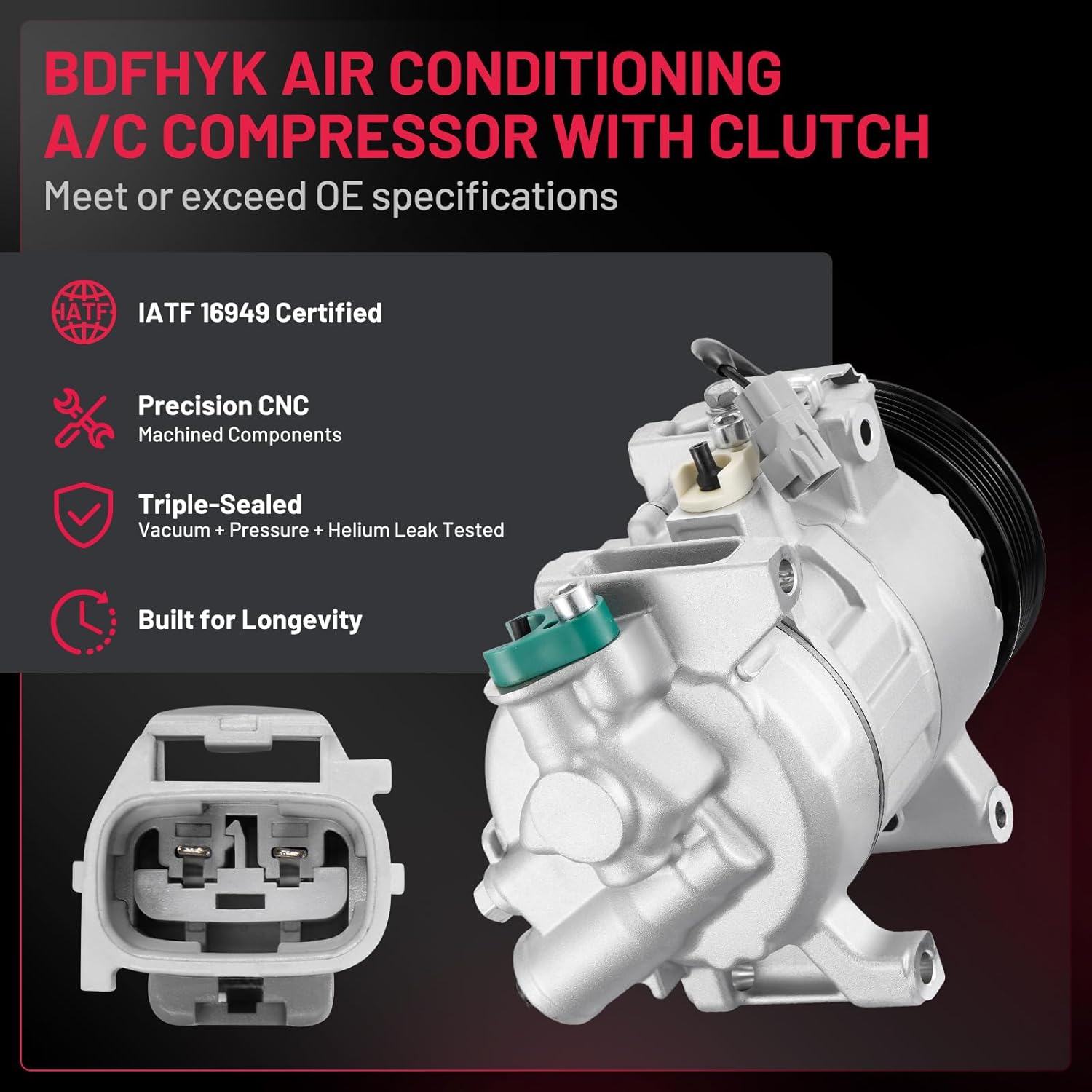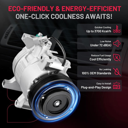 Reliability & Performance - 100% Brand New | IATF 16949 Certified | 50,000-Mile Accelerated Life Tested | Triple-Sealed: Vacuum + Pressure + Helium Leak Tested (99.9% Leak-Free) | Precision CNC-Machined Components | Faster Cooling & Quieter vs. Standard Compressors | Built for Longevity