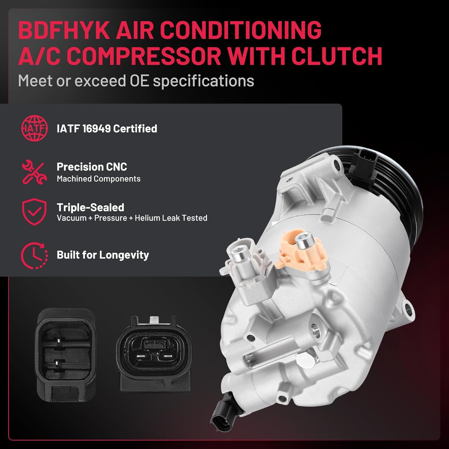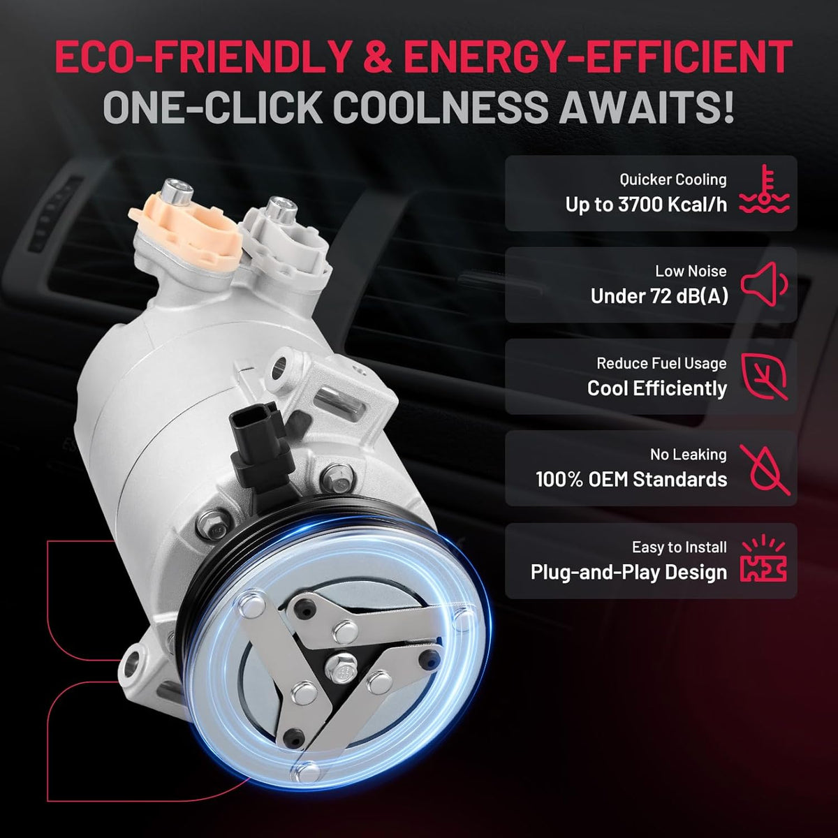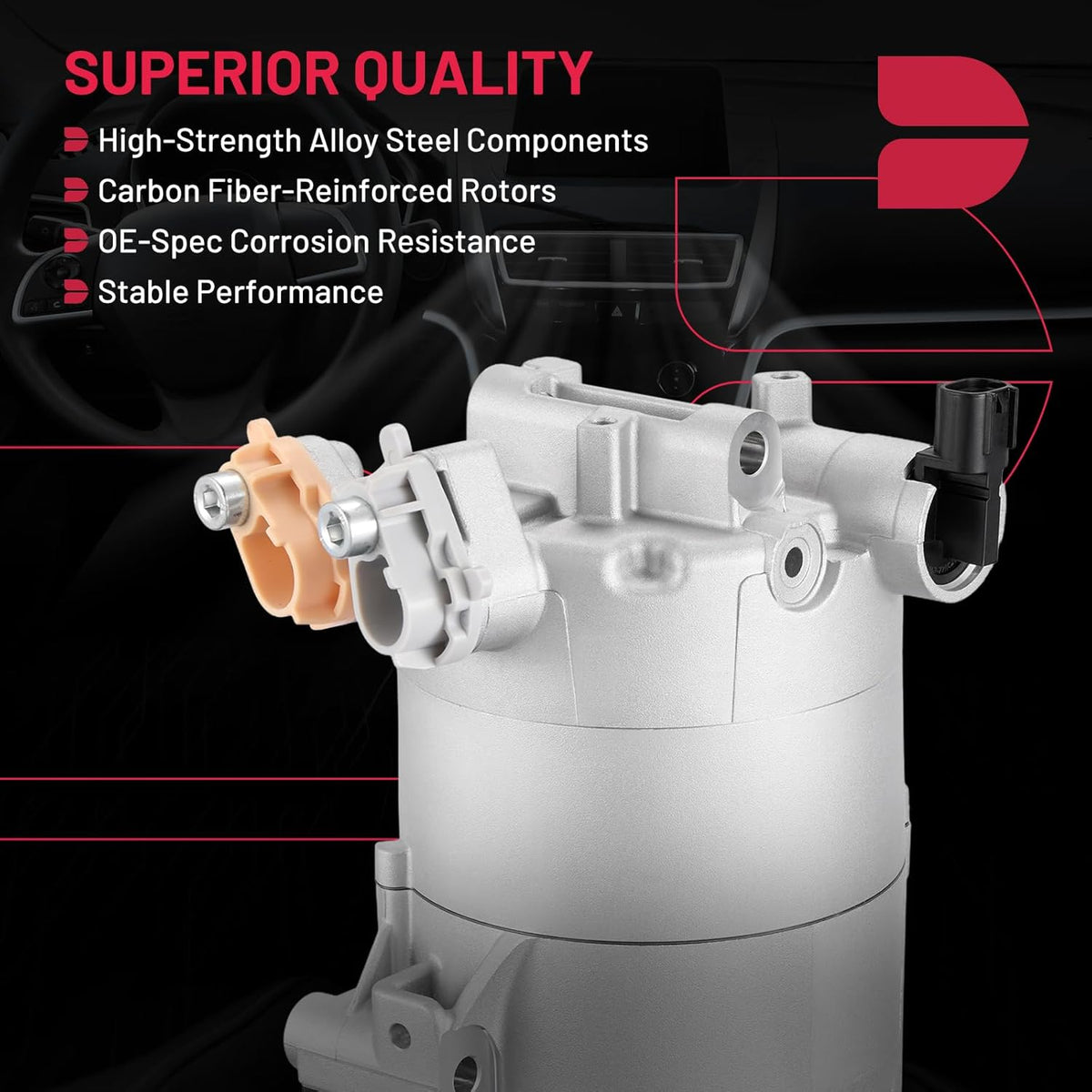Reliability & Performance - 100% Brand New | IATF 16949 Certified | 50,000-Mile Accelerated Life Tested | Triple-Sealed: Vacuum + Pressure + Helium Leak Tested (99.9% Leak-Free) | Precision CNC-Machined Components | Faster Cooling & Quieter vs. Standard Compressors | Built for Longevity