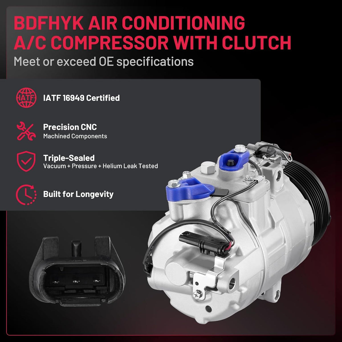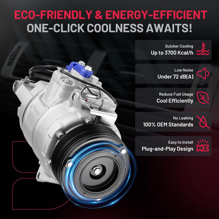 Reliability & Performance - 100% Brand New | IATF 16949 Certified | 50,000-Mile Accelerated Life Tested | Triple-Sealed: Vacuum + Pressure + Helium Leak Tested (99.9% Leak-Free) | Precision CNC-Machined Components | Faster Cooling & Quieter vs. Standard Compressors | Built for Longevity