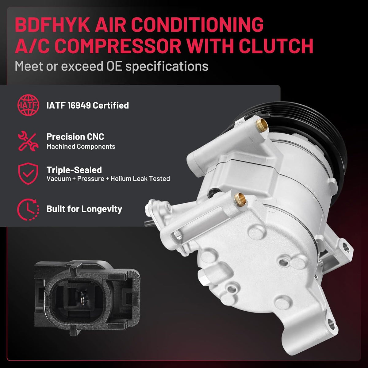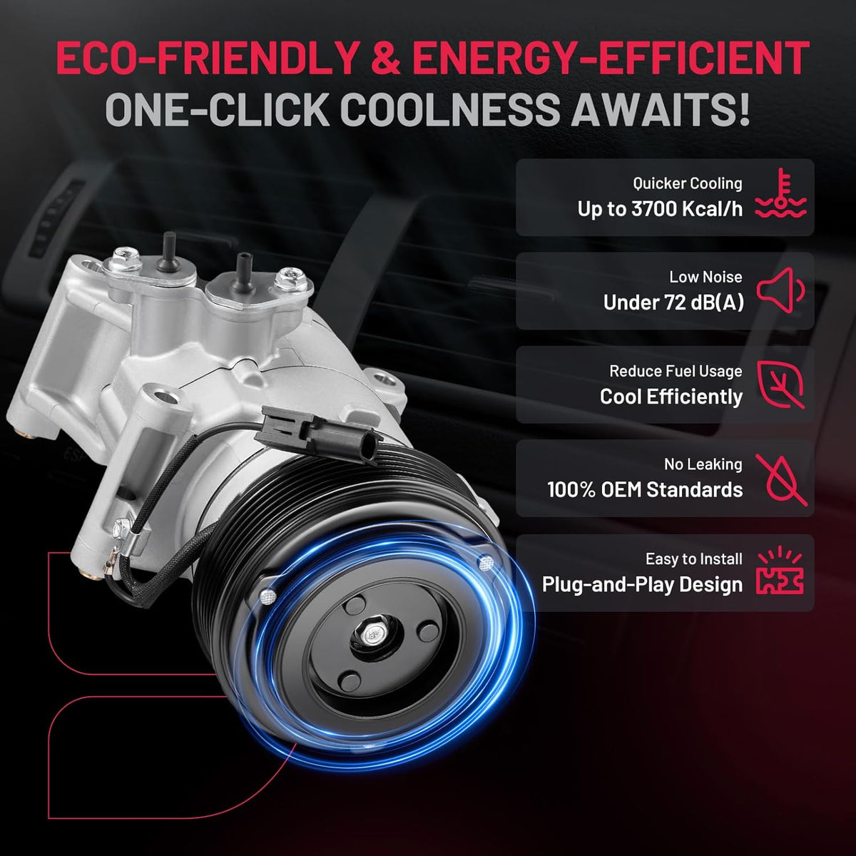 Reliability & Performance - 100% Brand New | IATF 16949 Certified | 50,000-Mile Accelerated Life Tested | Triple-Sealed: Vacuum + Pressure + Helium Leak Tested (99.9% Leak-Free) | Precision CNC-Machined Components | Faster Cooling & Quieter vs. Standard Compressors | Built for Longevity